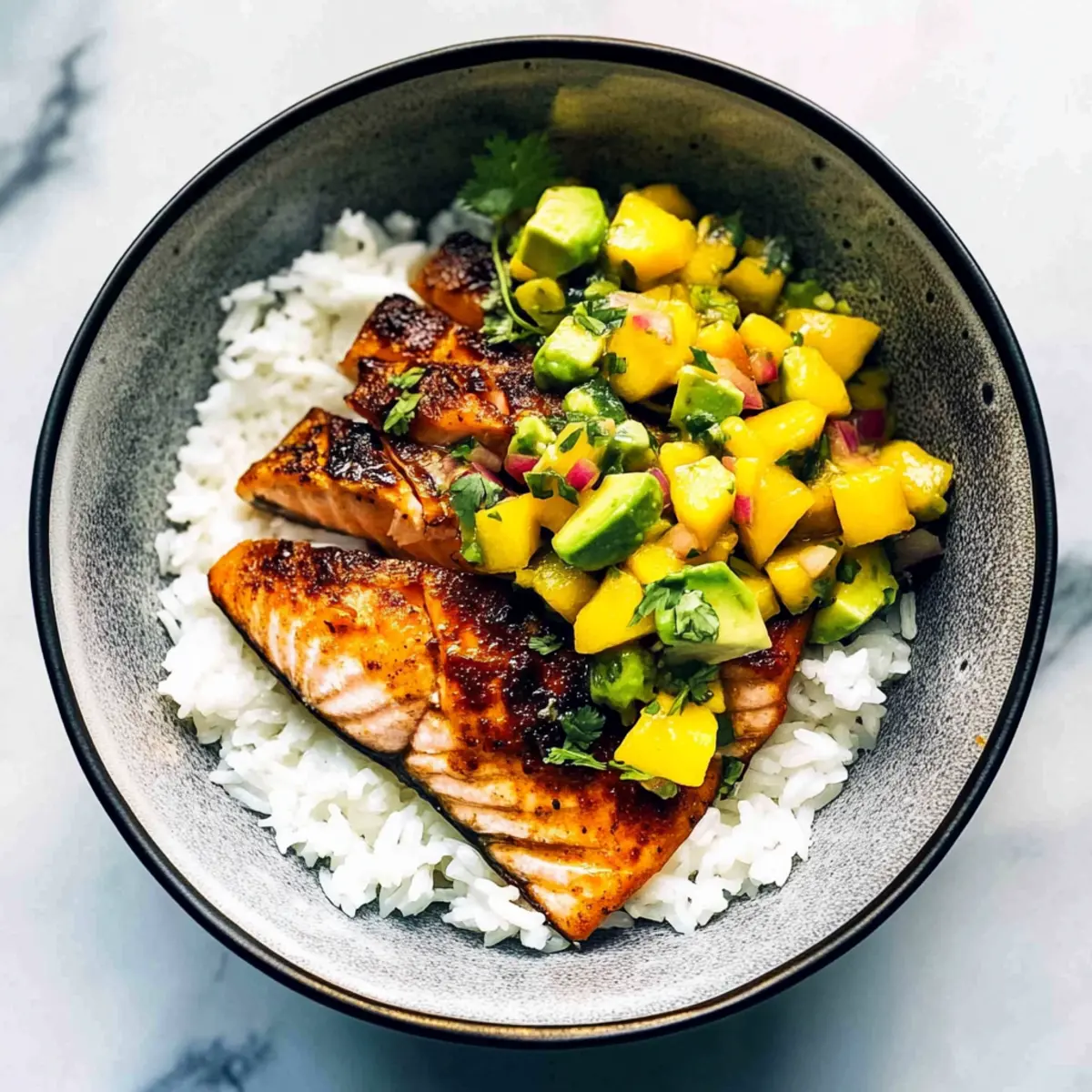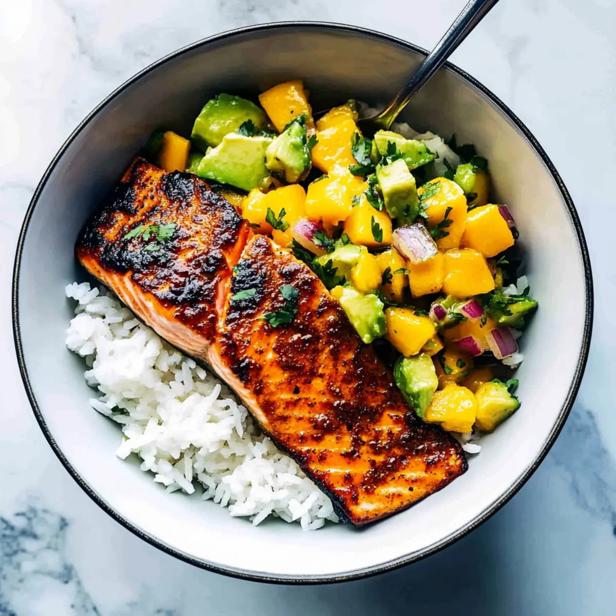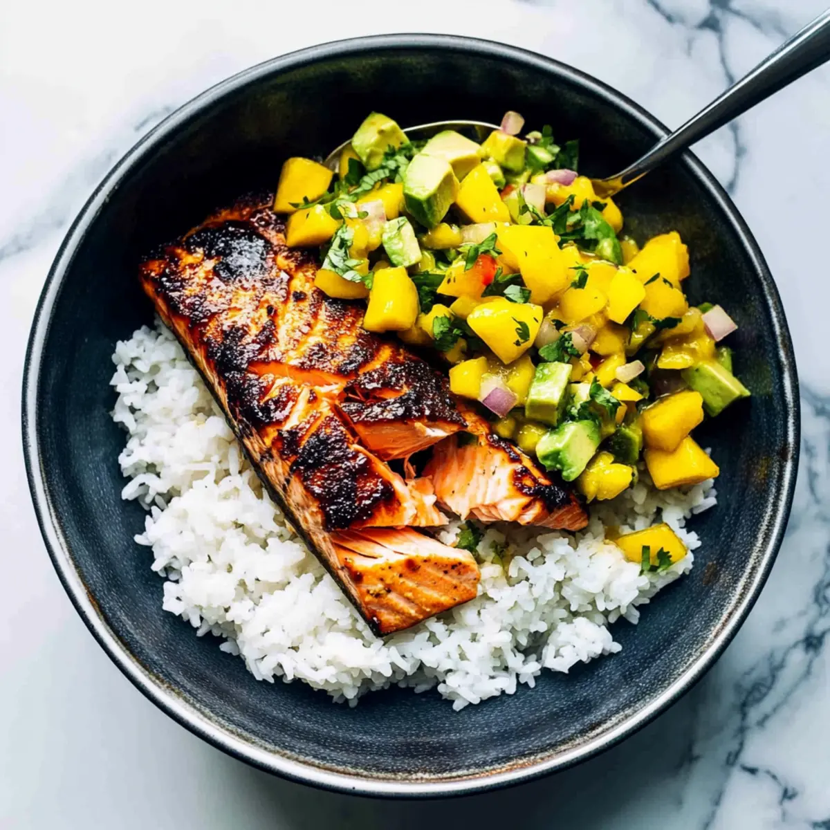 BBQ Salmon Bowls with Mango Avocado Salsa for Summer Bliss