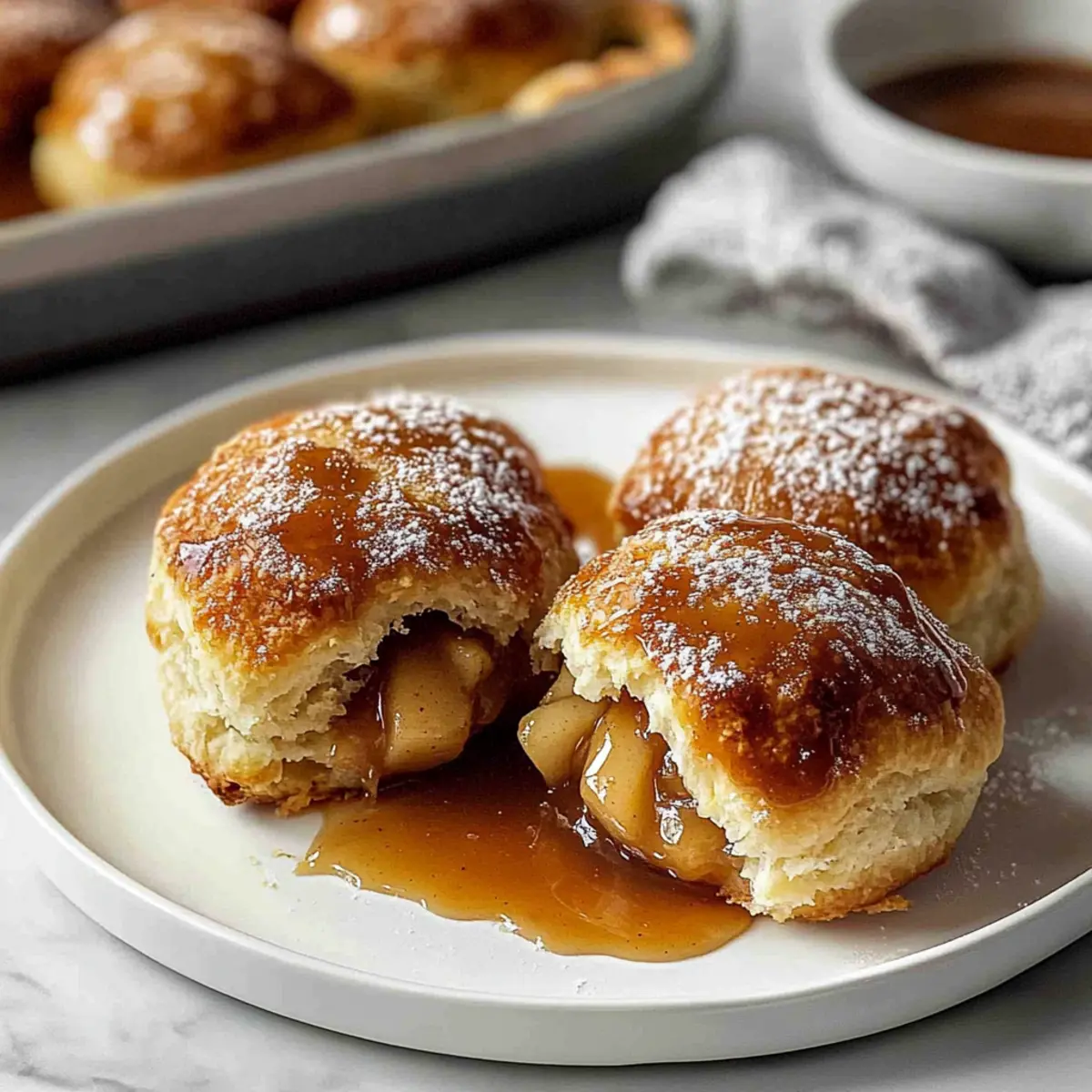 Fill Wisely: Avoid overfilling each biscuit; sticking to about 1 tablespoon of apple mixture and 1 caramel piece helps maintain their shape and ensures even cooking.