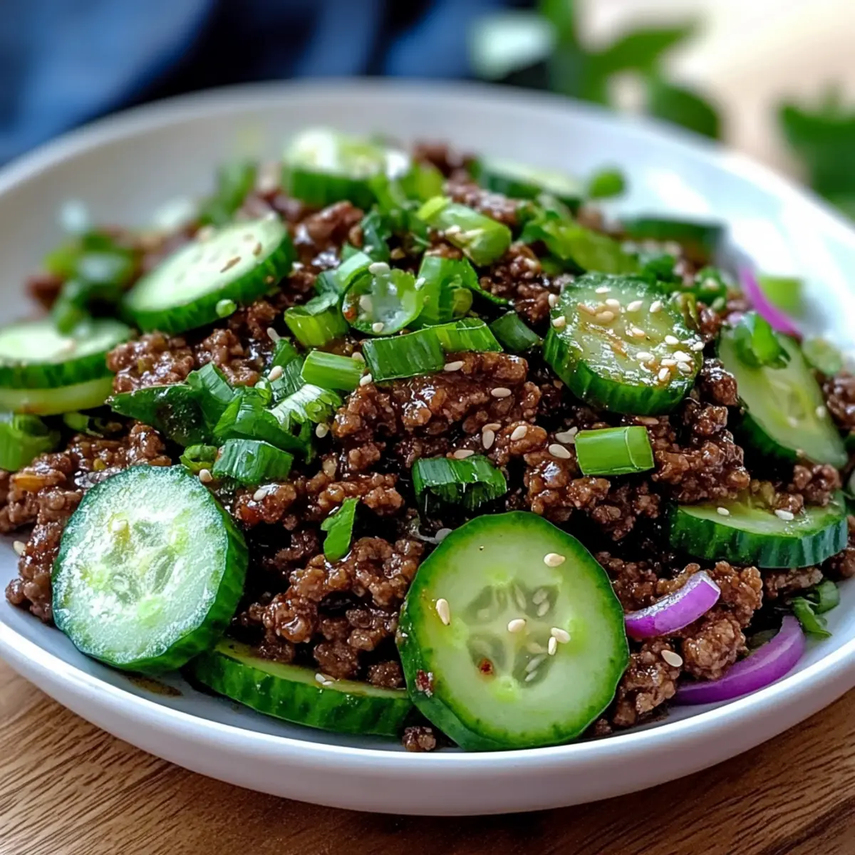 Savory Spicy Korean Ground Beef with Crunchy Cucumber Salad
