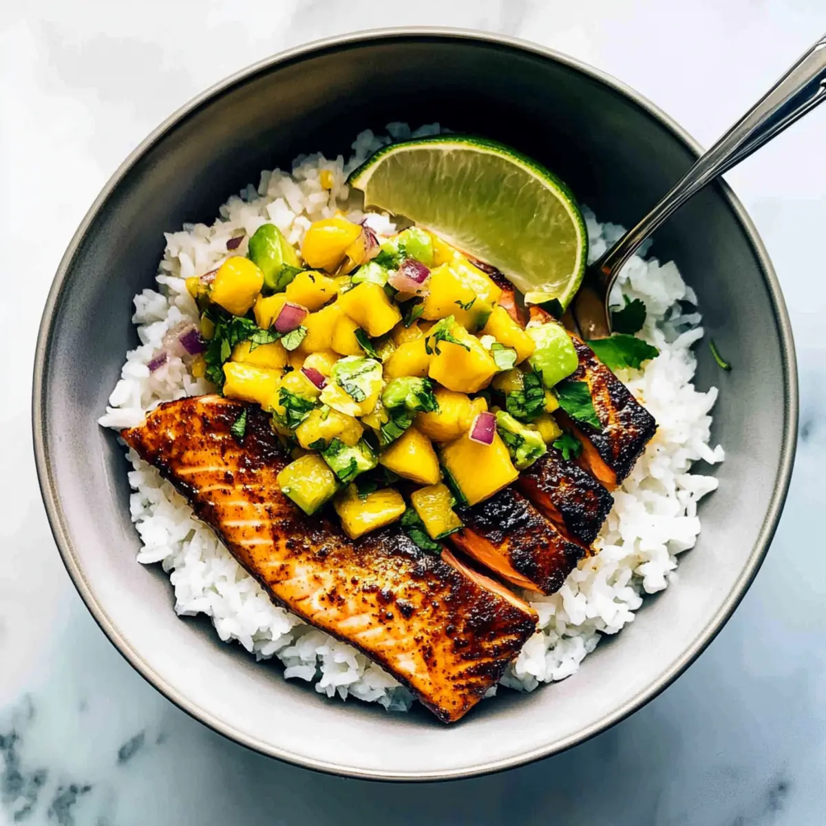 BBQ Salmon Bowls with Mango Avocado Salsa for Summer Bliss