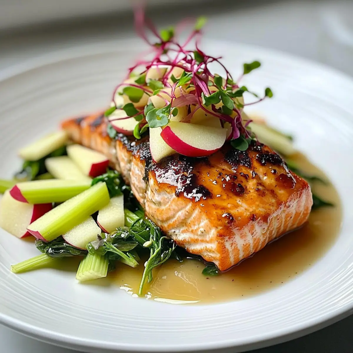 Maple-Mustard Salmon with Fresh Apple-Celery Crunch