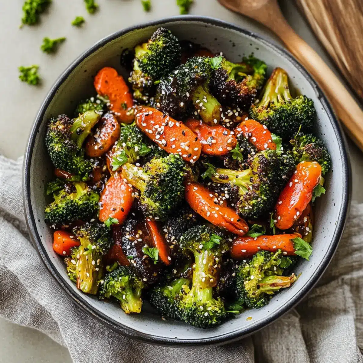 Savory Roasted Broccoli & Carrots with Asian Twist