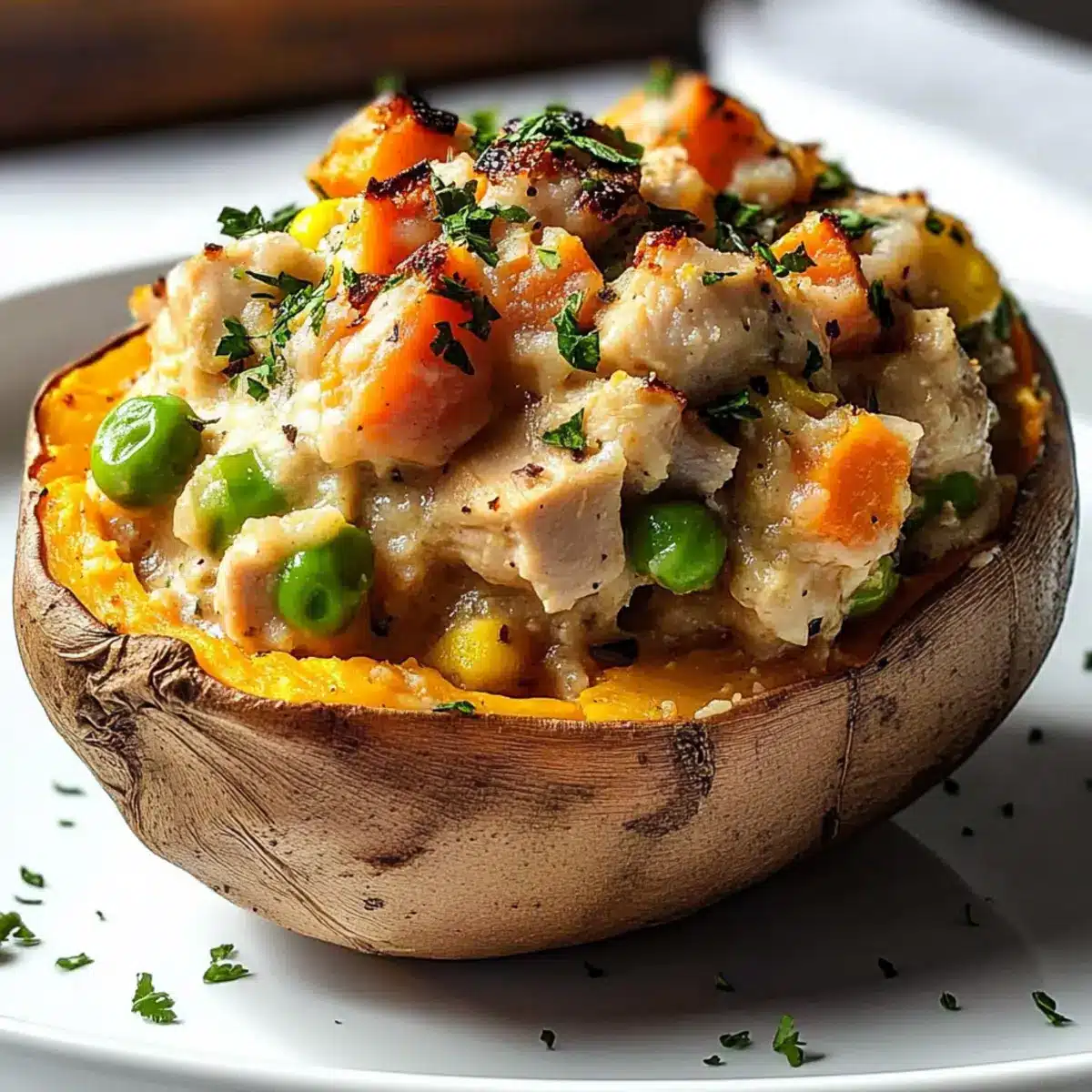 Irresistible Chicken Pot Pie Stuffed Sweet Potatoes Delight