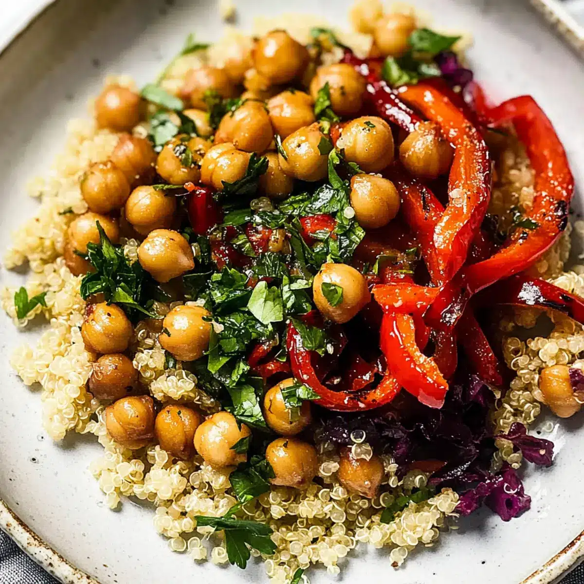 Roasted Red Pepper Salad with Crispy Chickpeas for Cozy Nights