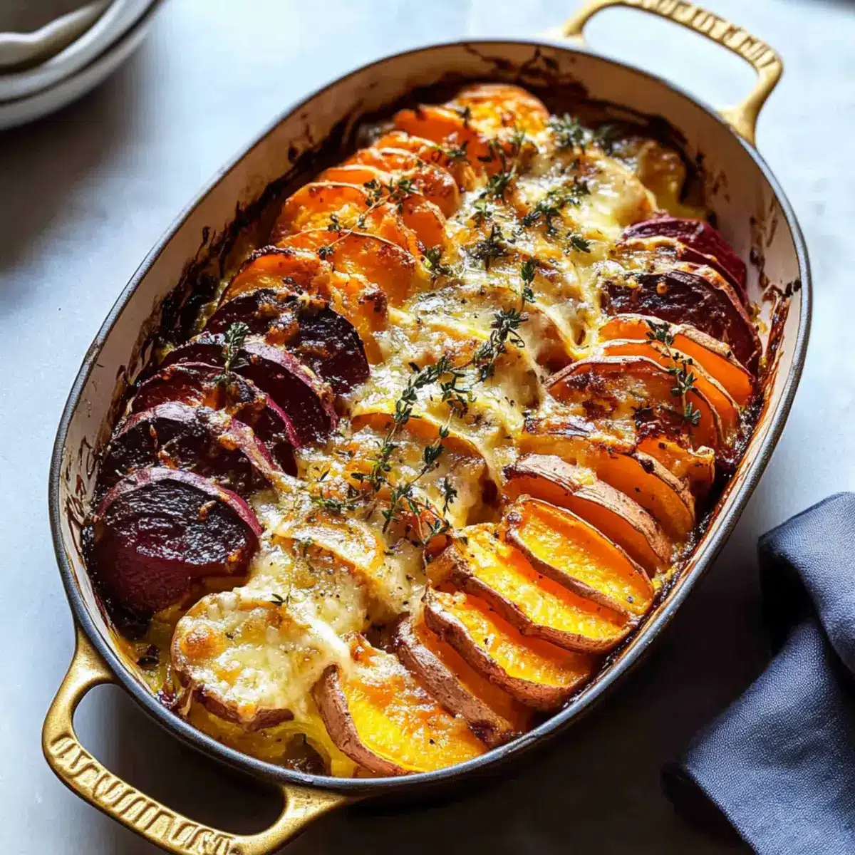 As I stood in my kitchen last holiday season, the air filled with the unmistakable aroma of garlic and roasting vegetables, I couldn’t help but feel a wave of warmth sweep over me. This Cheesy Root Vegetable Gratin is more than just a dish; it’s a comforting embrace on a snowy evening, combining sweet potatoes, beets, and parsnips in a luscious creamy garlic sauce. Not only does this recipe create a stunning centerpiece for any festive table, but it also offers the delicious perks of being vegetarian and a real crowd-pleaser. Perfect for Thanksgiving or any special gathering, this gratin is the kind of comfort food that invites you to linger at the table. Ready to dive into a dish that’s sure to impress your guests and delight your taste buds? Let’s unearth the secrets to creating this holiday showstopper!