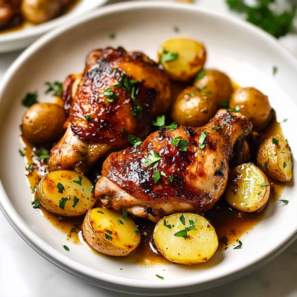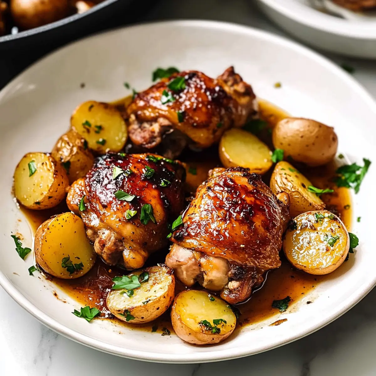 Appealing Texture: Enjoy the crispy skin of chicken thighs alongside fluffy, buttery baby potatoes—a harmony of textures that makes each mouthful satisfying.