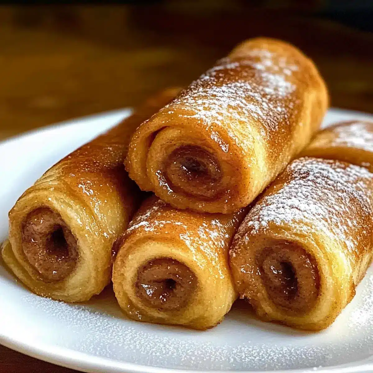 Carefully dip each rolled bread piece in the egg mixture, ensuring it’s evenly coated but not oversoaked. Quickly place each roll seam-side down into the hot skillet. Cook for about 2-3 minutes on each side, rotating them to achieve an even golden-brown toast. Watch for a crispy exterior while the insides remain warm and soft.