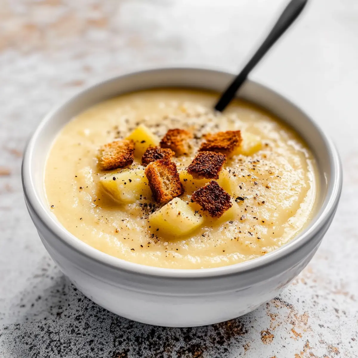 In a blender, combine the drained potatoes, roasted garlic (squeezed from its skin), vegetable broth, soy or oat cream, nutritional yeast, onion powder, and black pepper. Blend the mixture until completely smooth and creamy—add more vegetable broth as needed for your desired consistency. This will create the rich foundation of your creamy roasted garlic potato soup.