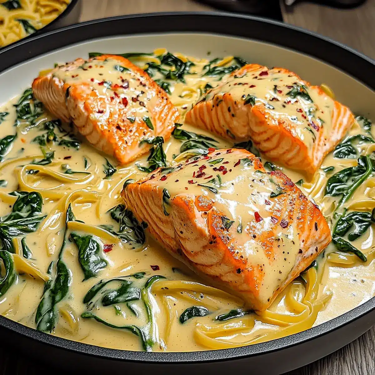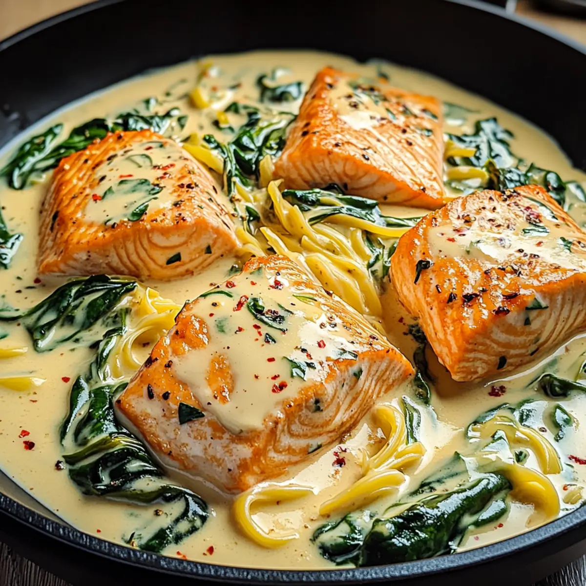 Spoon the creamy salmon mixture onto plates and garnish with extra Parmesan or freshly chopped herbs if desired. This final touch elevates your dish visually and adds a burst of flavor. Pair with a crisp side salad or crusty bread to complete your meal, making this Easy Creamy Salmon Florentine a memorable dining experience.