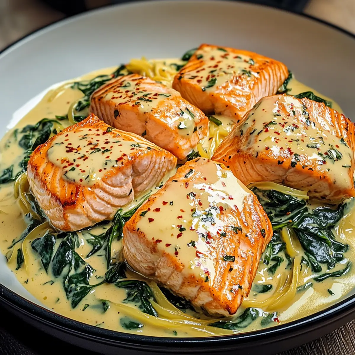 As I stood in my kitchen, the aroma of garlic wafting through the air took me back to that charming little bistro where I first tasted a creamy salmon dish that felt like a warm embrace. Today, I’m excited to share my version: Easy Creamy Salmon Florentine. This delightful recipe combines tender, flaky salmon with a velvety garlic-Parmesan cream sauce and fresh spinach, resulting in a meal that’s both elegant and comforting. Best of all, it can be whipped up in under 30 minutes, making it an effortless choice for any weeknight or special dinner. With its versatile ingredients and restaurant-quality flair, this dish will impress your family and friends alike. Ready to transform your dinner routine? Let’s dive in!