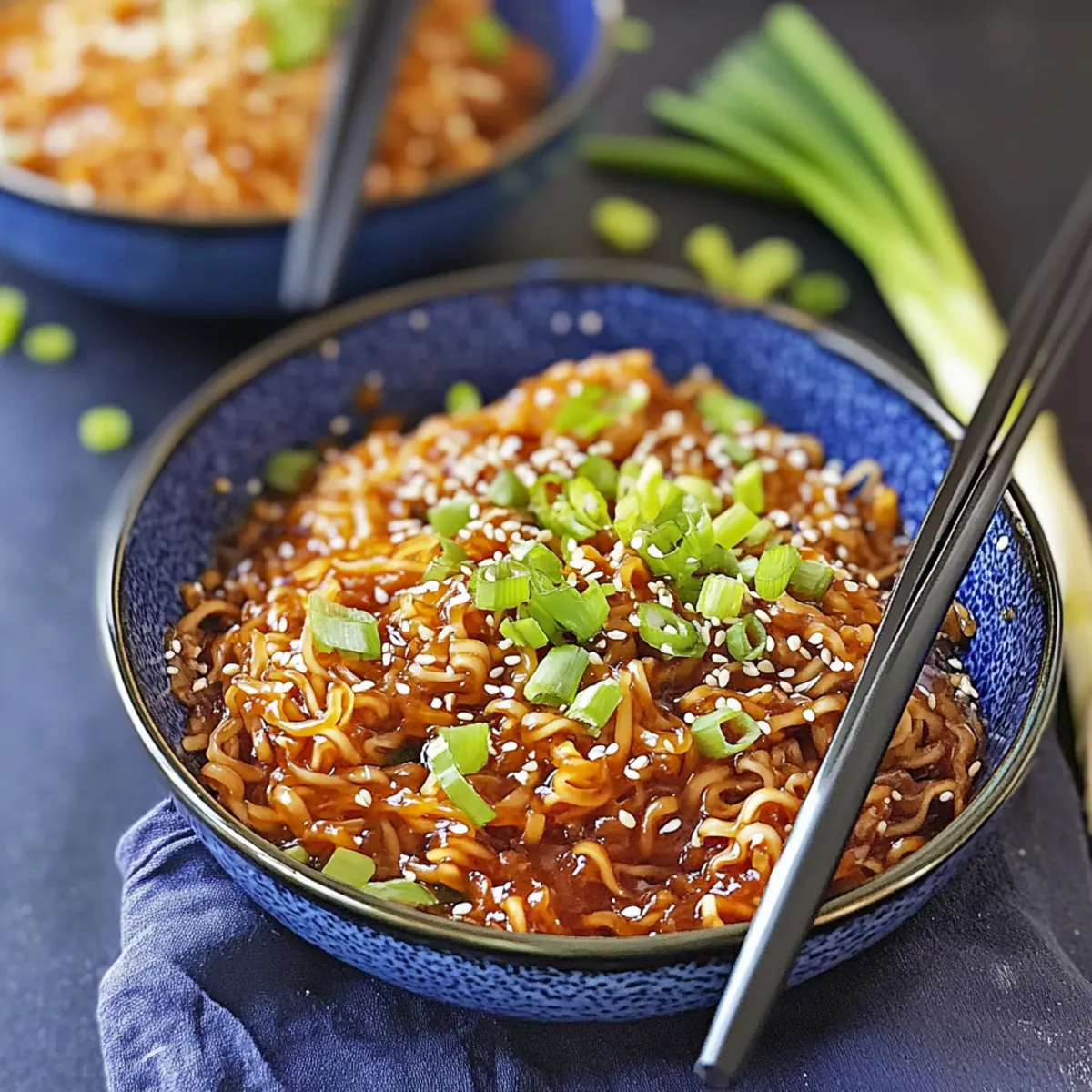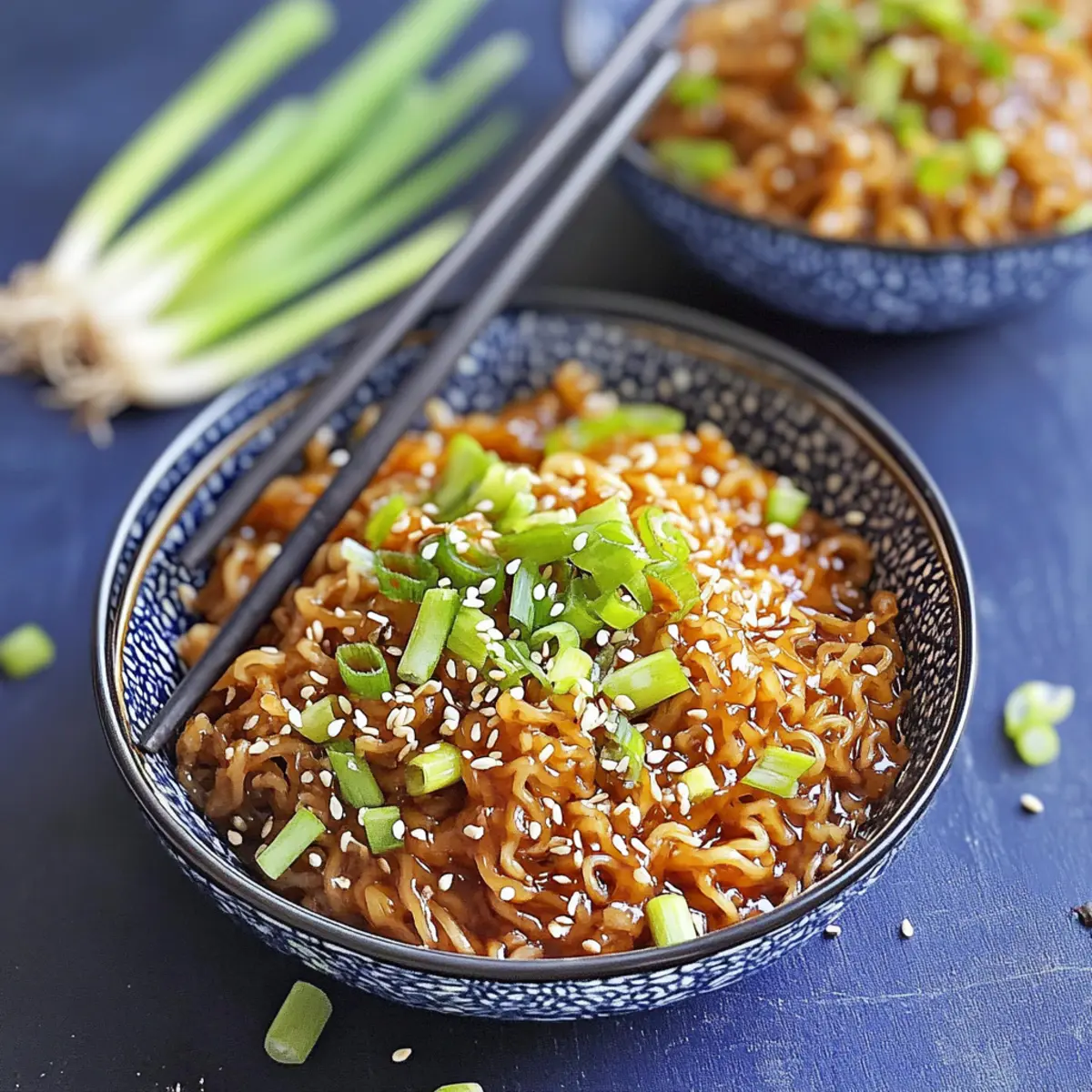 Once the noodles are tender and have absorbed the sauce, remove the pot from heat. For a burst of freshness and added crunch, garnish your Easy Saucy Ramen Noodles with chopped scallions and a sprinkle of sesame seeds, if desired. Serve immediately while hot, and savor each delicious bite of your homemade creation!