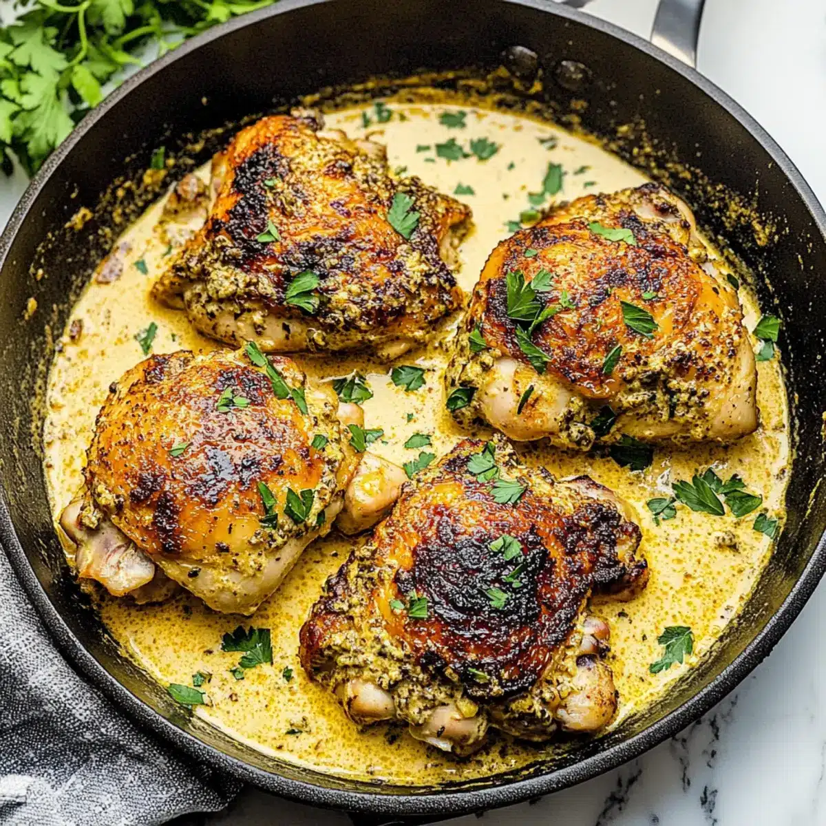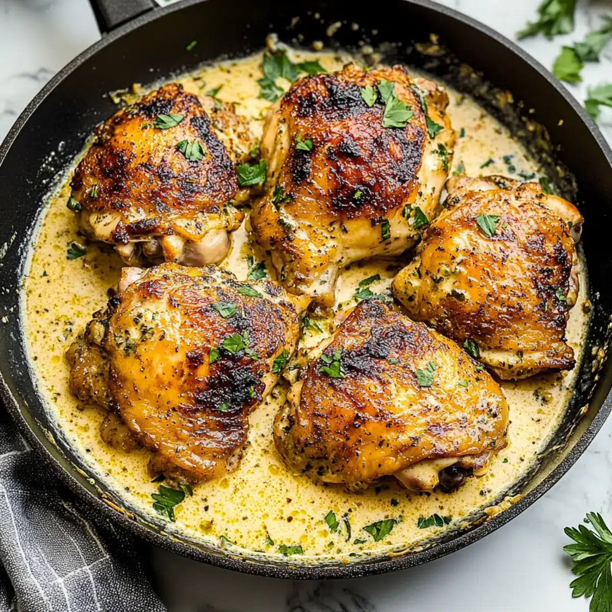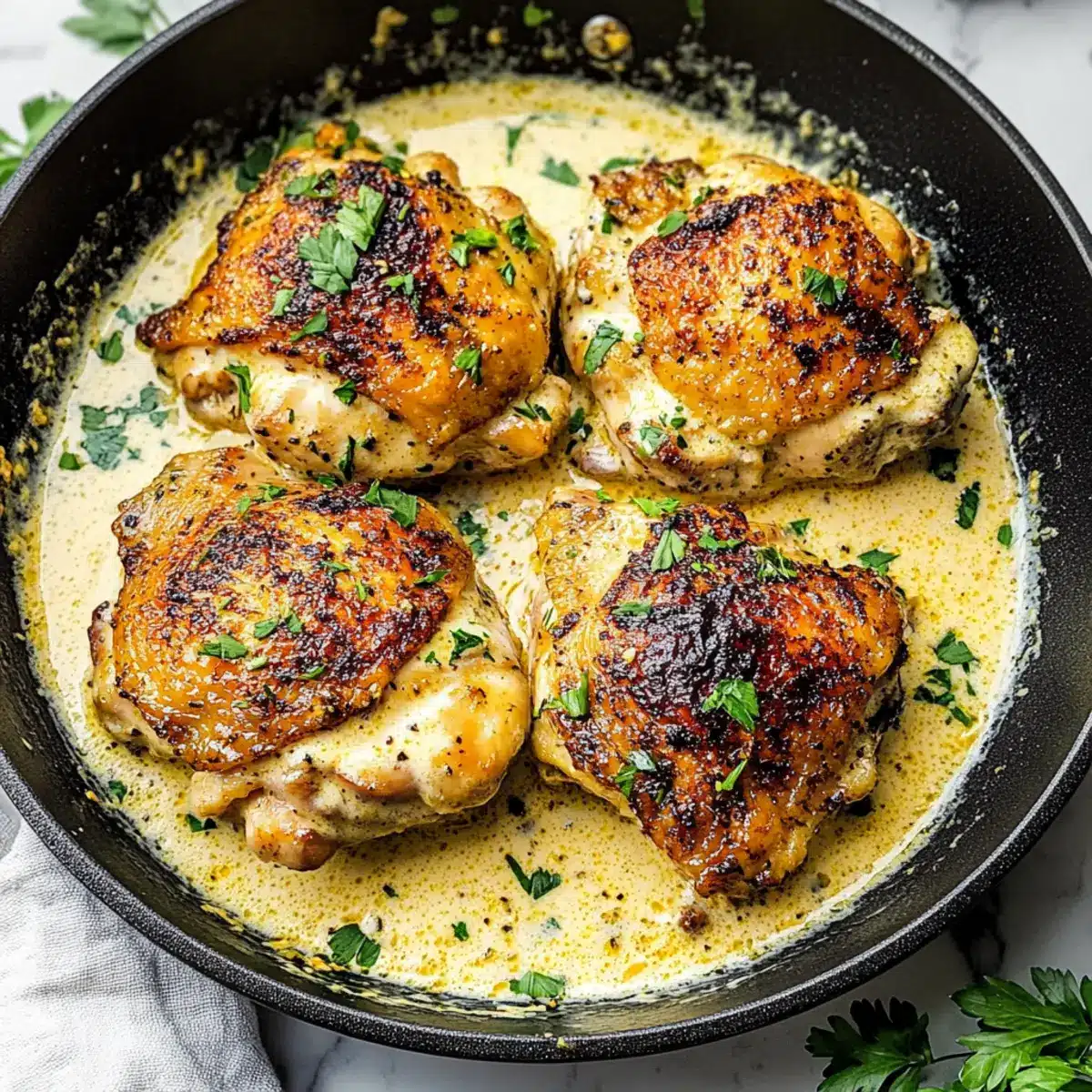 Savor Easy Skillet Chicken Thighs with Creamy Garlic Sauce