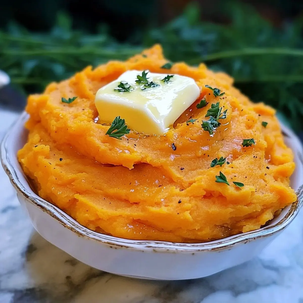 Transfer the delicious Fluffy Mashed Sweet Potatoes to a serving bowl. For an extra touch, consider adding a pat of butter on top or garnishing with freshly chopped parsley or thyme. This adds a lovely visual element that enhances the dish.