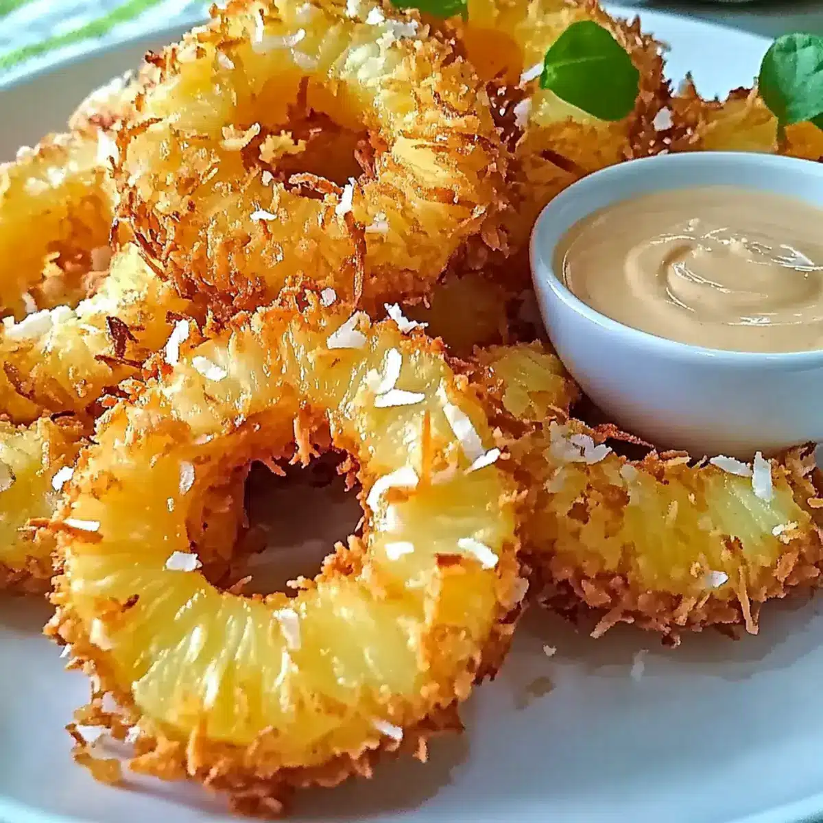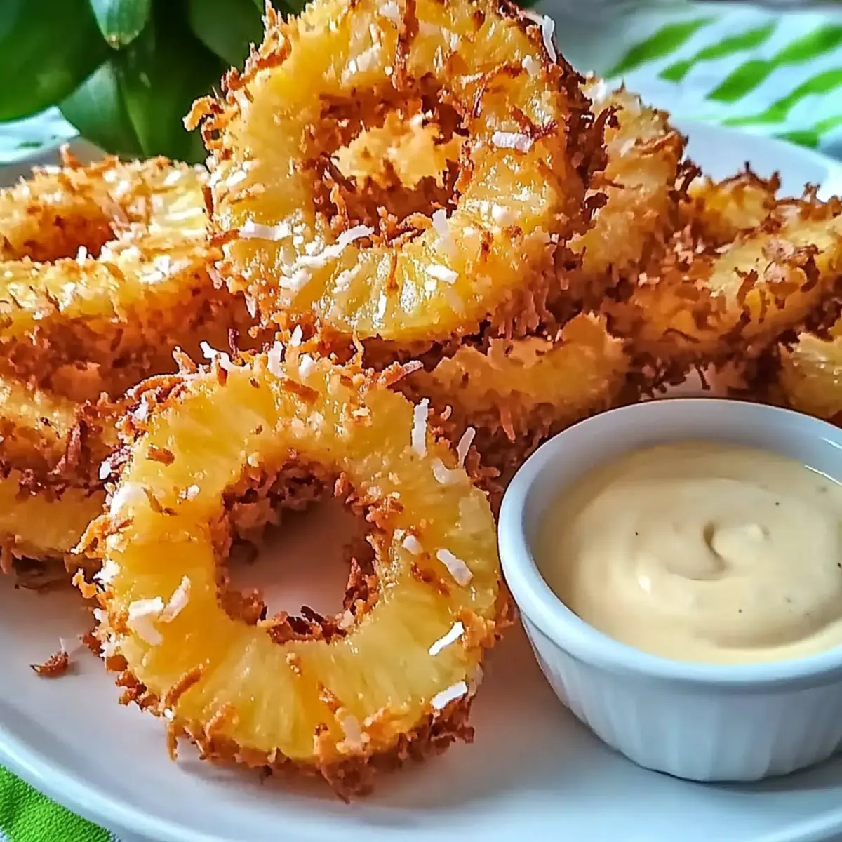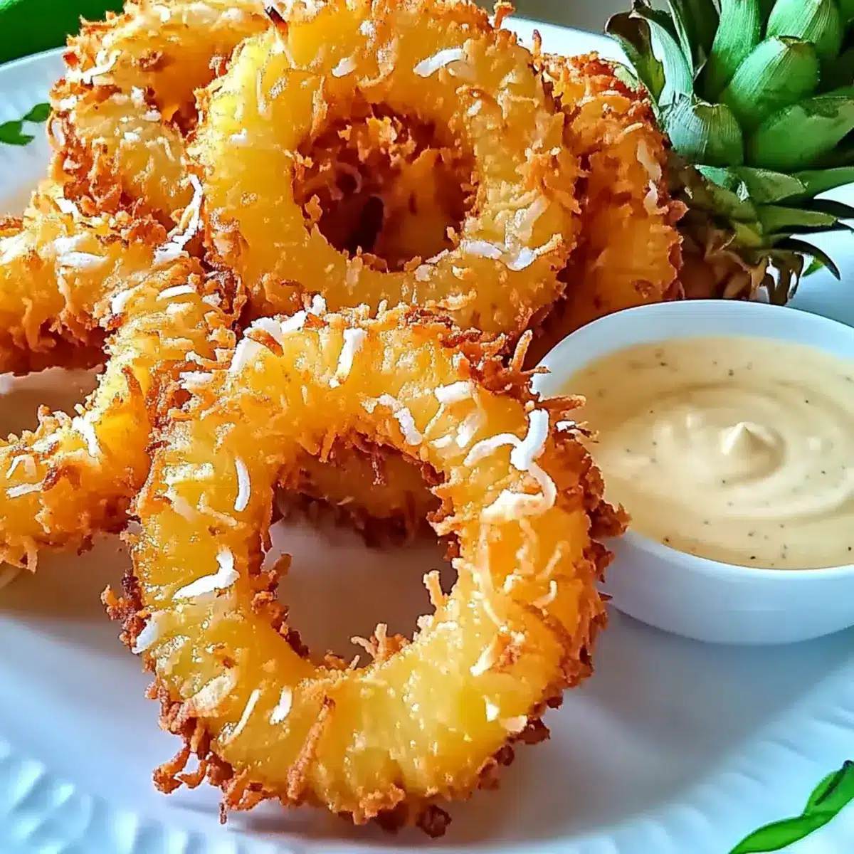 Fried Pineapple Rings with a Rum-Infused Coconut Crunch