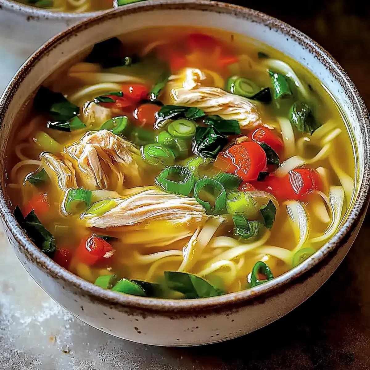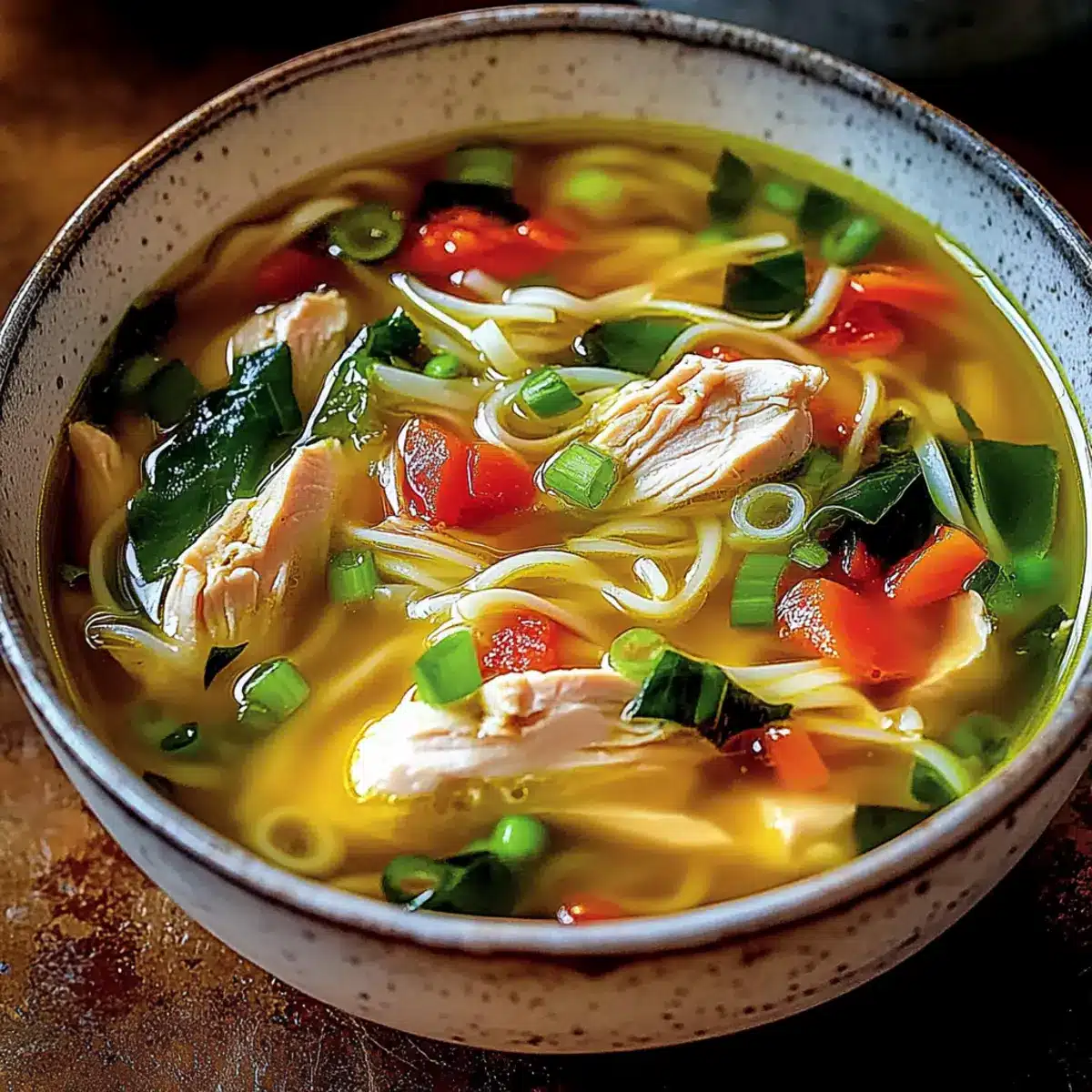 Ladle the hot soup into bowls and top with sliced green onions for a fresh flavor burst. The warmth and aroma of your Ginger Garlic Chicken Noodle Soup will be inviting and delicious, ready to enjoy!