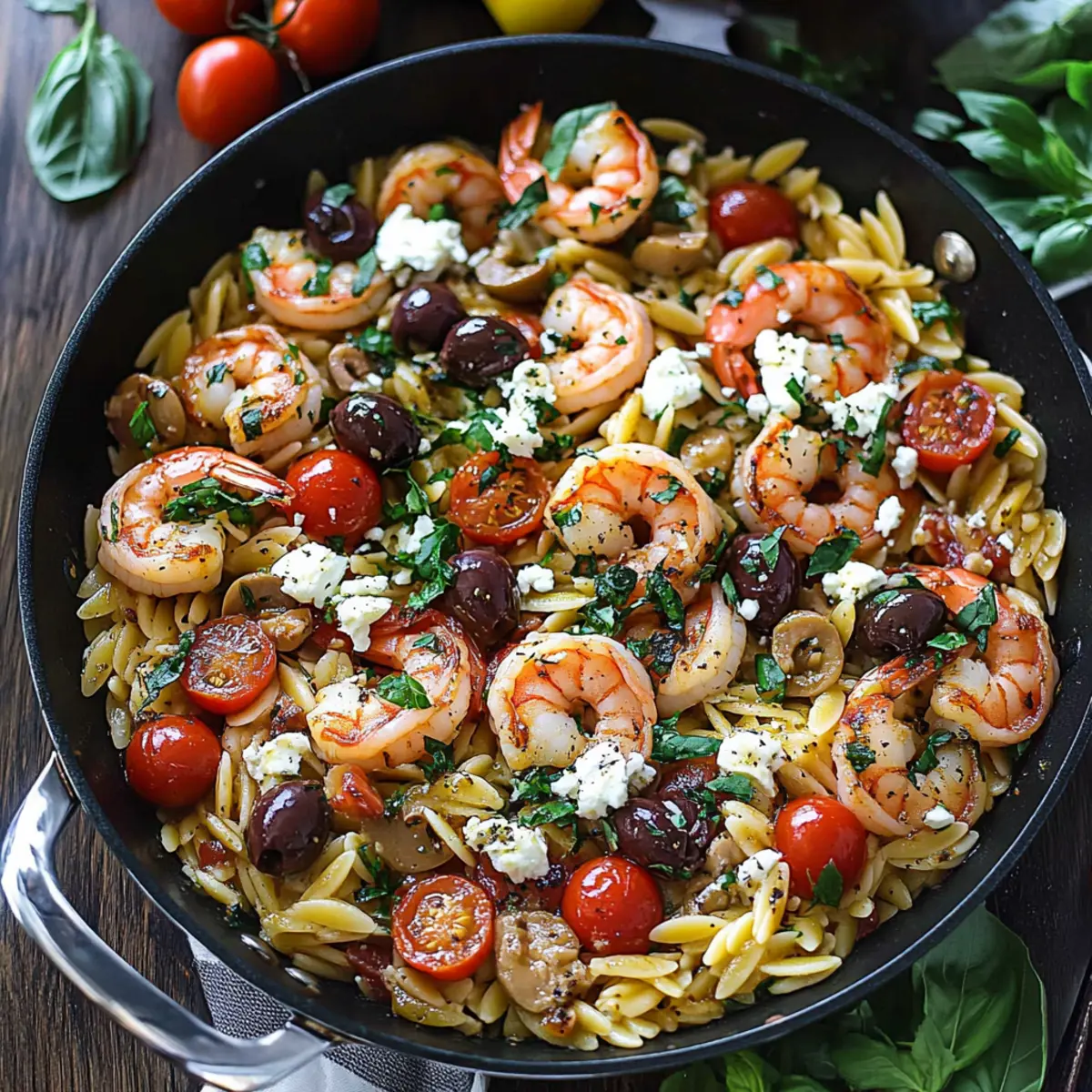 Flavor Explosion: The marriage of juicy shrimp, savory orzo, and creamy feta delivers a delightful flavor profile, reminiscent of sun-kissed Mediterranean shores.