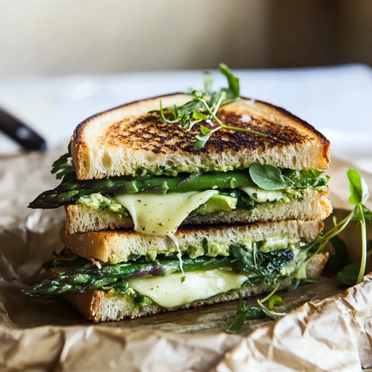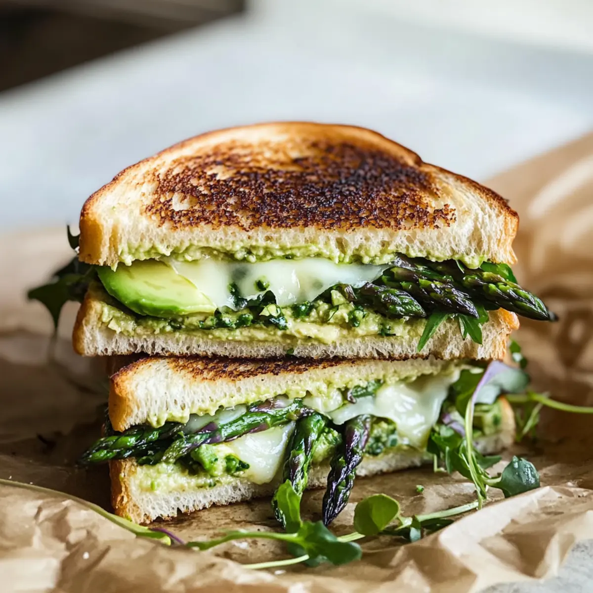 - Take two thick slices of French or white bread and spread the buttery mixture generously on one side of each slice. On the other side, spread a layer of the zesty Green Goddess spread, followed by layers of low-moisture mozzarella, slices of ripe avocado, and crunchy asparagus spears. Top with another slice of mozzarella before closing the sandwich, ensuring a delicious filling.