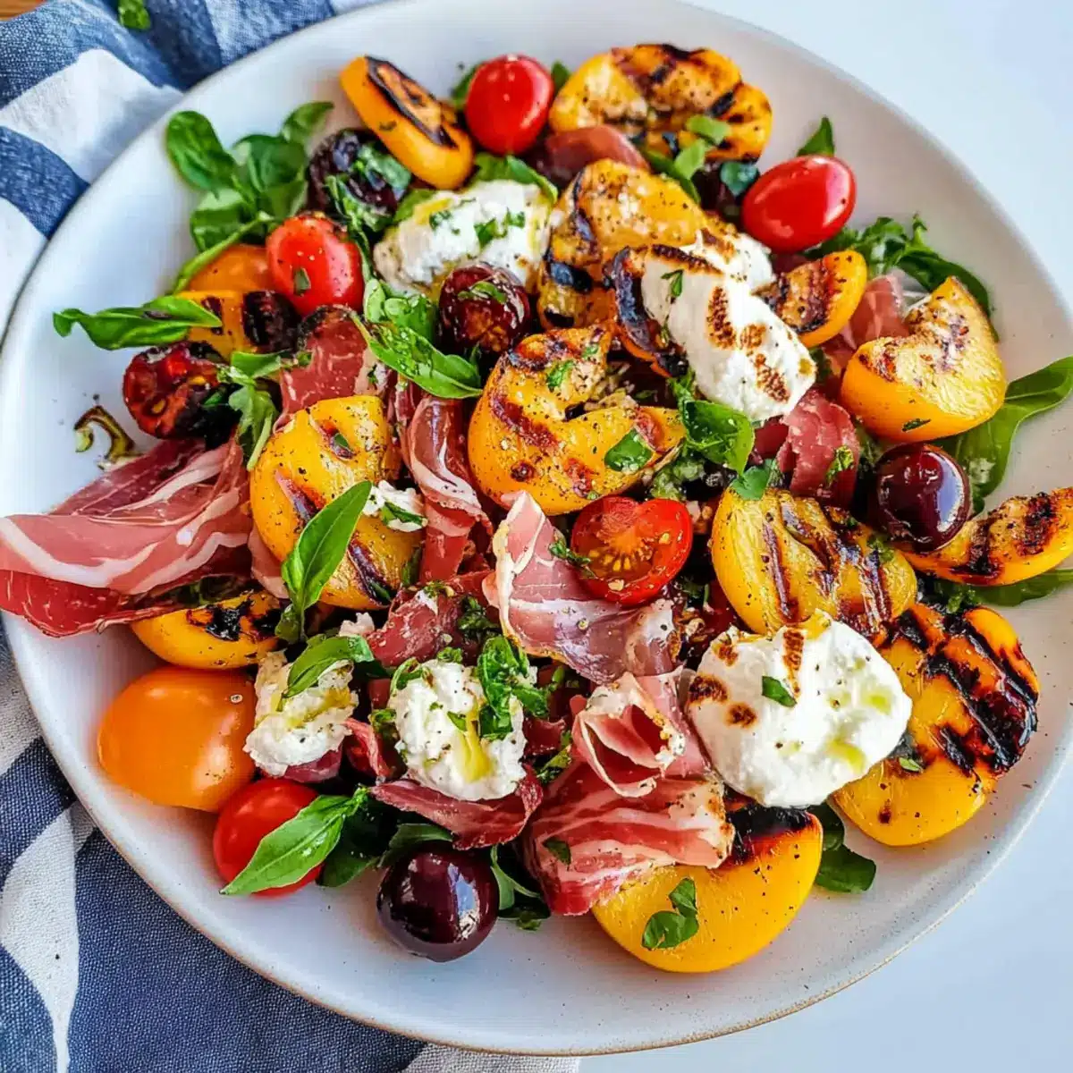 Sizzling on the grill, the sweet aroma of nectarines transforms the air into a fragrant paradise that beckons summer. This Grilled Nectarine Burrata Prosciutto Salad is my go-to dish for those warm, balmy nights when I crave something light yet satisfying. With juicy grilled nectarines, creamy burrata cheese, and savory prosciutto, this salad effortlessly combines sweet and savory flavors. It’s not only a visual delight but also a quick, uncomplicated recipe that shines at any gathering. Plus, with a vegetarian option available, it caters to everyone at the table. So, why not elevate your salad game this season? Let’s dive into the blissful world of summer salads—what will you pair with your grilled nectarines?