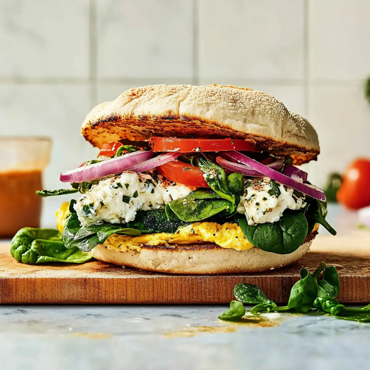 These Ultimate Make-Ahead Breakfast Sandwiches are a lifesaver for busy mornings! You can prepare the goat cheese spread and the spinach omelet up to 3 days in advance. Simply mix the goat cheese, chives, olive oil, garlic, and onion powder, then store in an airtight container in the fridge. Cook the omelet, slice it, and keep it separate until assembly. When you’re ready to enjoy, just toast the English muffins, layer the cheese, omelet, and your favorite toppings, and serve immediately. Wrapping the sandwiches in foil for freezing allows you to keep them for up to 3 months. Enjoy that homemade convenience and start your day off right!
