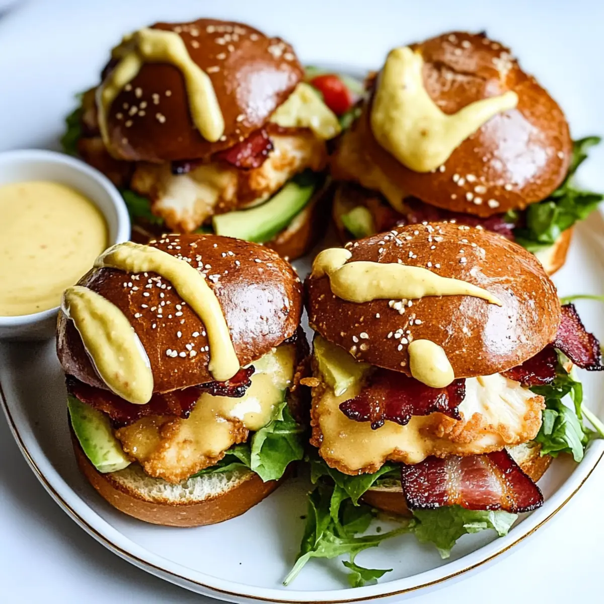 Close up each slider with its bun top, and serve them fresh with extra honey mustard drizzled on the side for dipping. These Honey Mustard BLT Chicken Sliders are now ready to be enjoyed, making for a delightful addition to your next gathering or cozy family night!