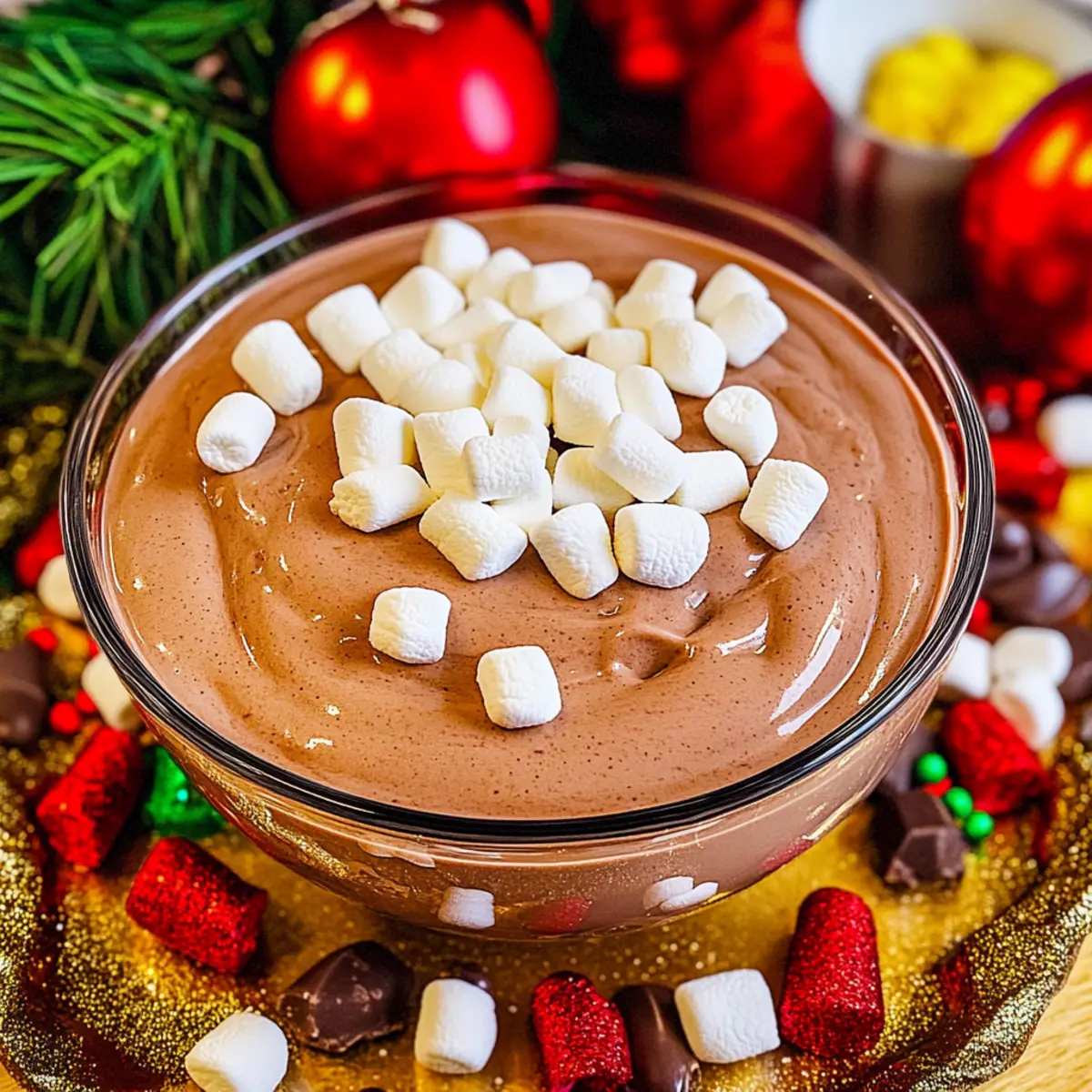 Carefully transfer the dip into a serving bowl, using a spatula to scrape down the sides of your mixing bowl. For a delightful finishing touch, garnish the dip with mini marshmallows, which will add an appealing visual element as well as extra sweetness. Now your Hot Chocolate Dip is ready to serve—enjoy this comforting treat with your favorite dippers!