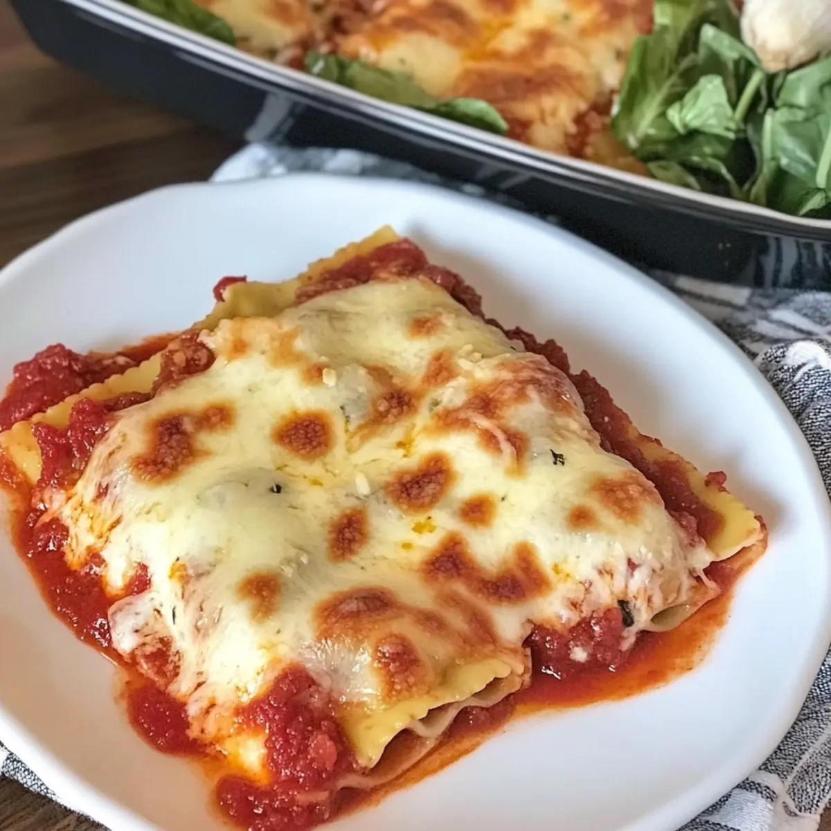 Adjust Baking Time: If using refrigerated ravioli instead of frozen, reduce the covered baking time by 5-10 minutes to avoid overcooking.