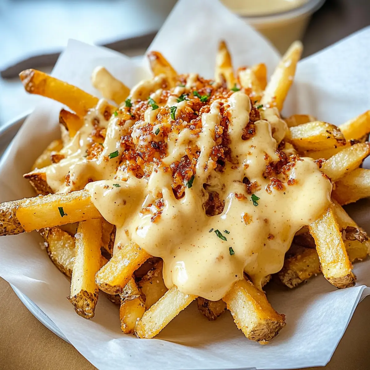 • Quality Cheese Matters: Use high-quality white cheddar cheese for a smooth, rich sauce. Cheaper cheeses can clump and may not melt properly, ruining your fries.