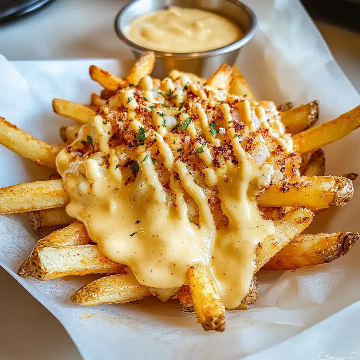 Creamy Indulgence: With rich, melted white cheddar enveloping each fry, this recipe elevates comfort food to gourmet status.