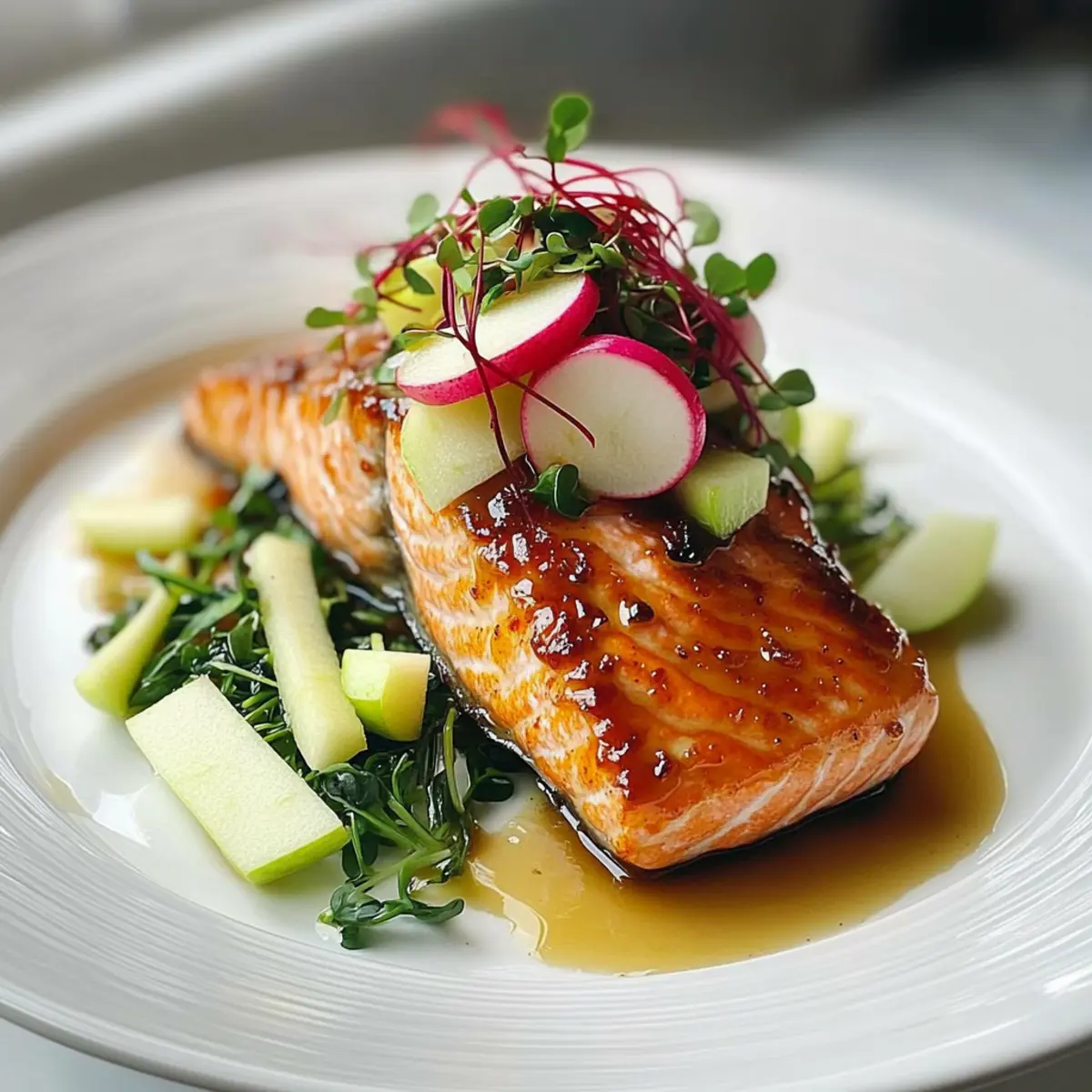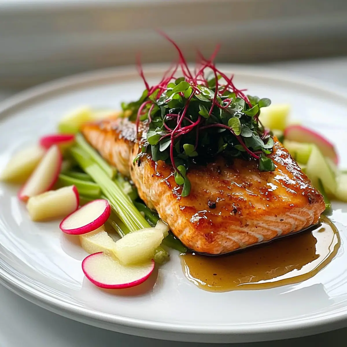- Incorporate microgreens into the salad mixture. Serve the salad underneath or on top of the salmon, drizzling with any remaining glaze.