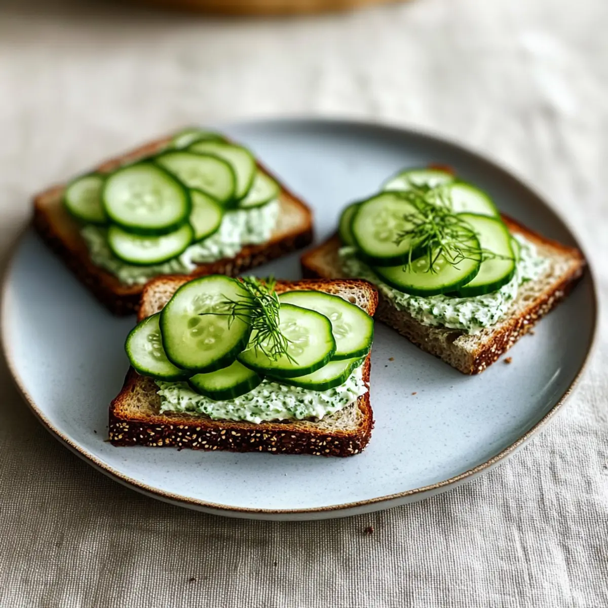 Yes, you can! To freeze, assemble the sandwiches without adding the cucumber. Wrap them tightly in plastic wrap and place them in an airtight container. They can be stored in the freezer for up to 1 month. When you’re ready to serve, simply thaw them in the fridge overnight and add fresh cucumber slices just before serving to ensure the best texture!