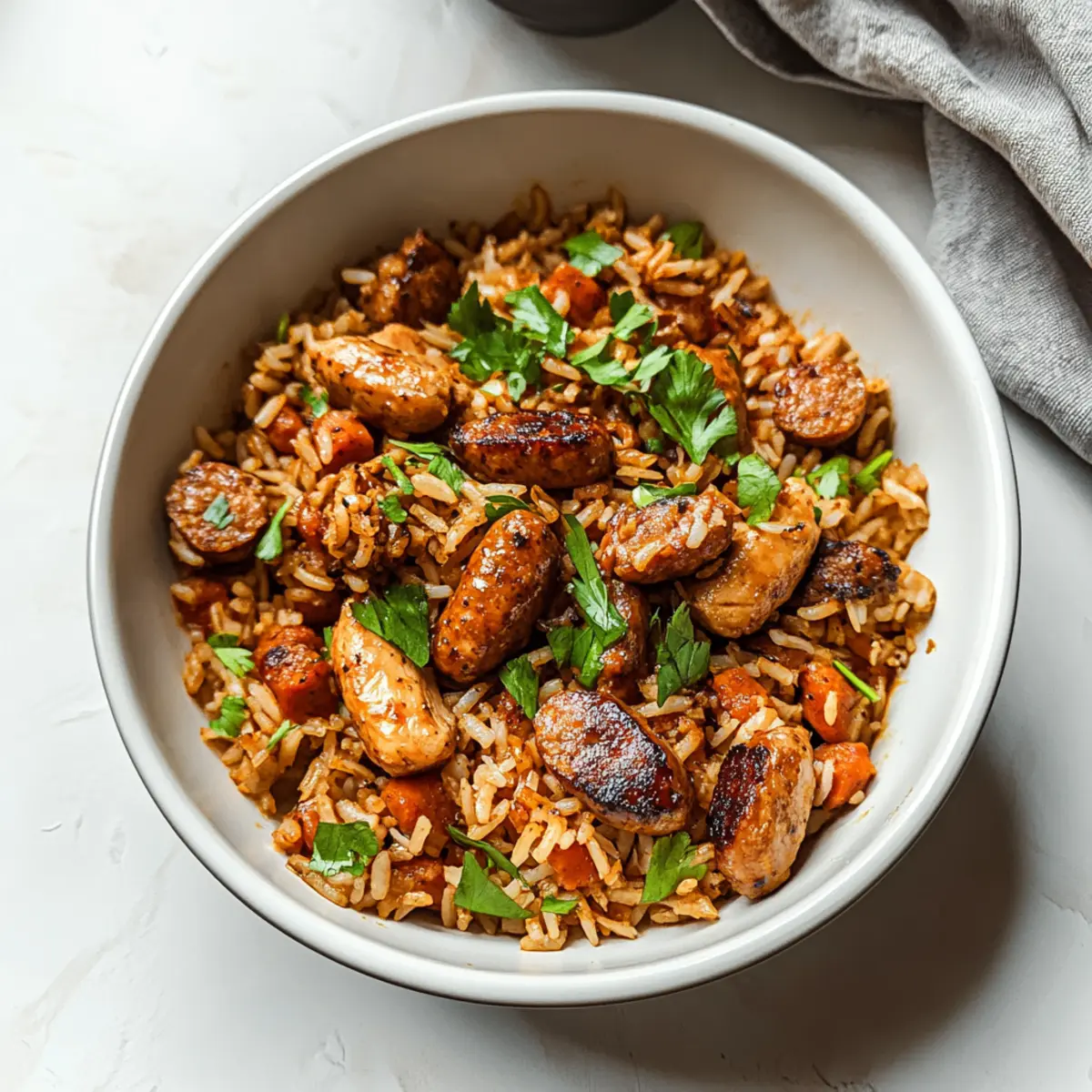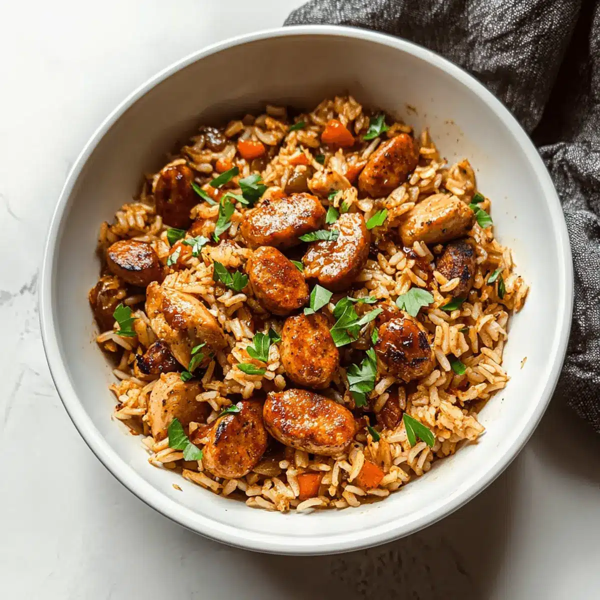 As I poured the vibrant spices into the skillet, the aroma instantly took me to New Orleans, swirling with the lively rhythm of jazz and a hint of spice in the air. Let me introduce you to my favorite comfort food: One-Pan Cajun Chicken Sausage & Rice. This dish is an absolute lifesaver for busy weeknights, blending succulent chicken, smoky sausage, and fluffy rice into a delightful, gluten-free ensemble that’s both satisfying and easy to clean up. Whether you’re winding down after a long day or planning a cozy dinner with friends, this recipe offers a flavorful escape with minimal fuss. So, are you ready to bring a taste of the Bayou into your kitchen? Let’s get cooking!