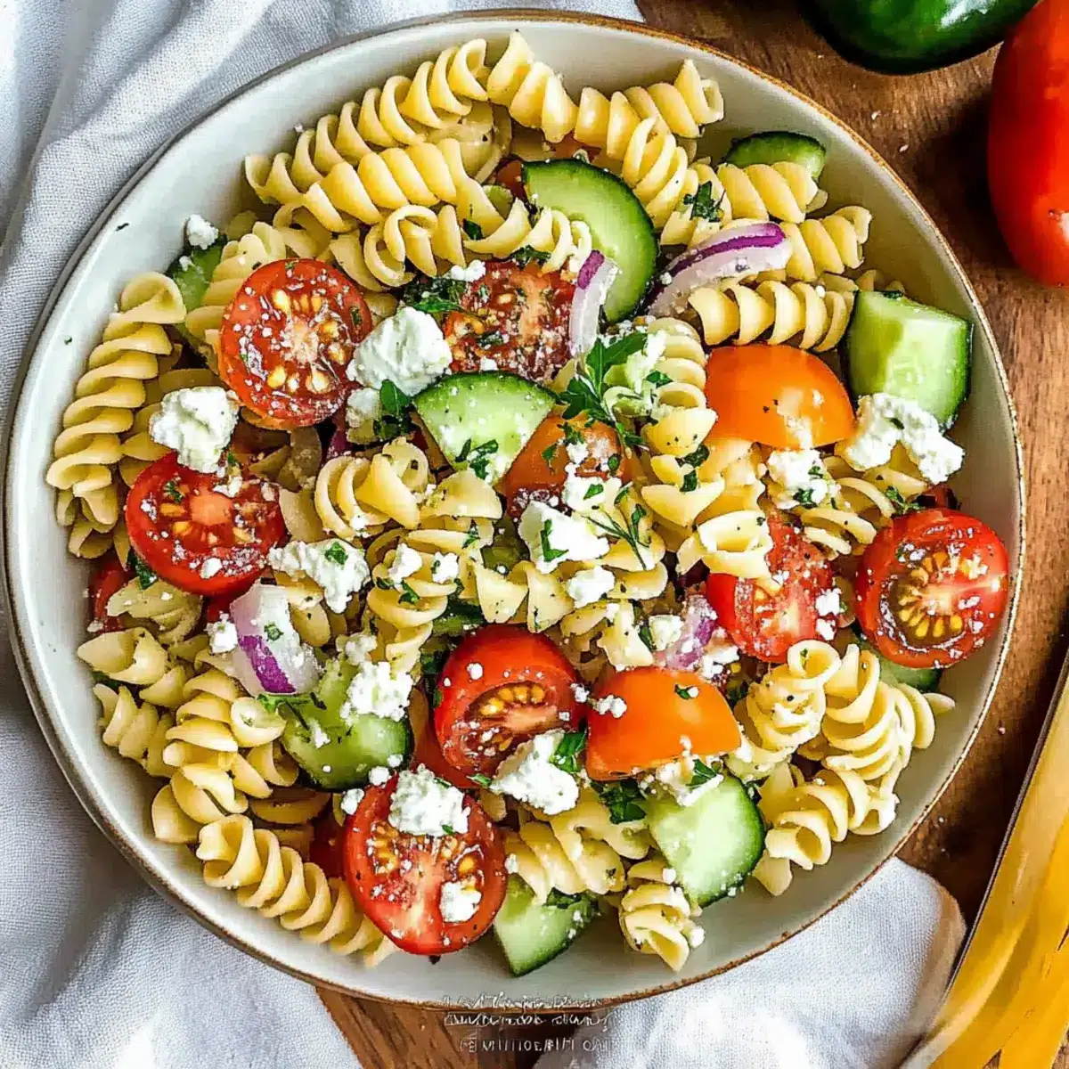 This Classic Vegetable Pasta Salad is a time-saving gem perfect for busy cooks! You can prepare the pasta up to 24 hours in advance by cooking it al dente and rinsing it under cold water to stop the cooking process. Chop the vegetables and store them separately in the refrigerator for up to 3 days to maintain their crunch and freshness. When you’re ready to serve, simply mix everything together with the dressing and gently fold in the feta cheese. A quick toss before serving keeps the flavors vibrant and the texture delightful. With these make-ahead tips, you can enjoy a delicious meal without the last-minute rush!