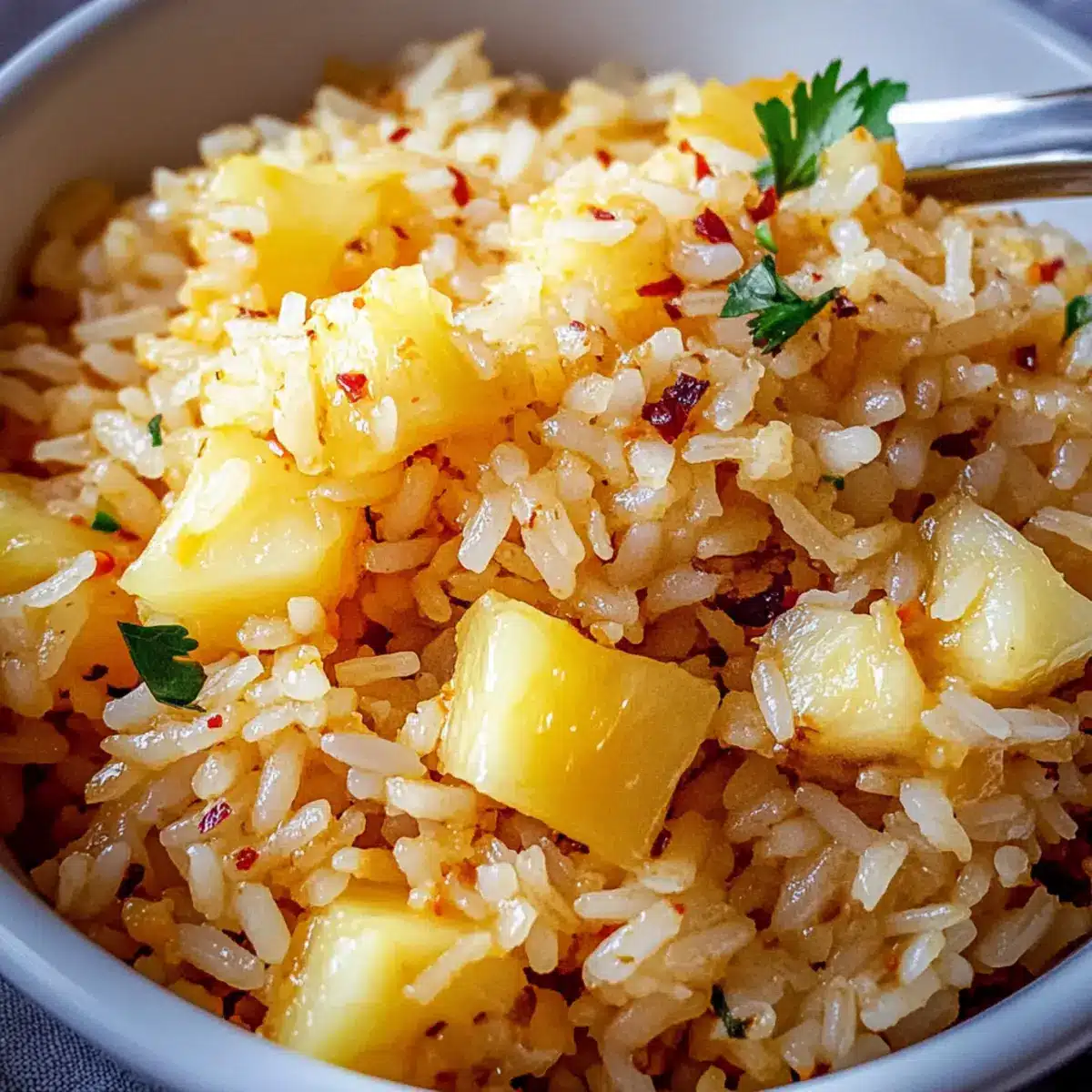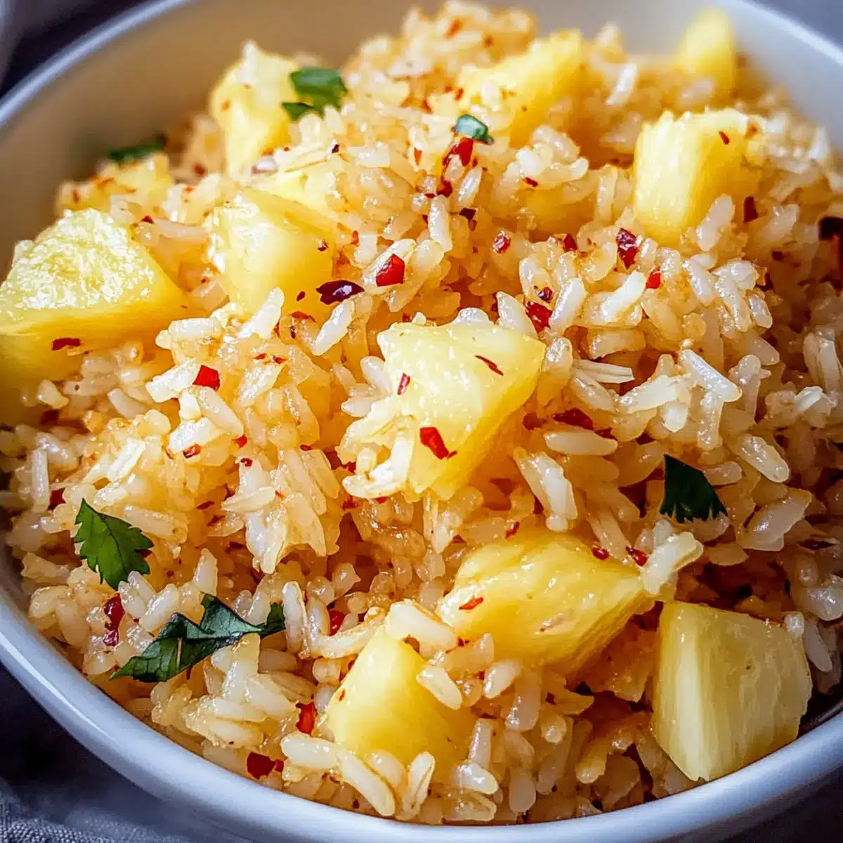 Herb Infusion: Add fresh cilantro or basil for a fragrant herbaceous touch that enhances the tropical essence of your Pineapple Rice. The aroma will be simply irresistible.