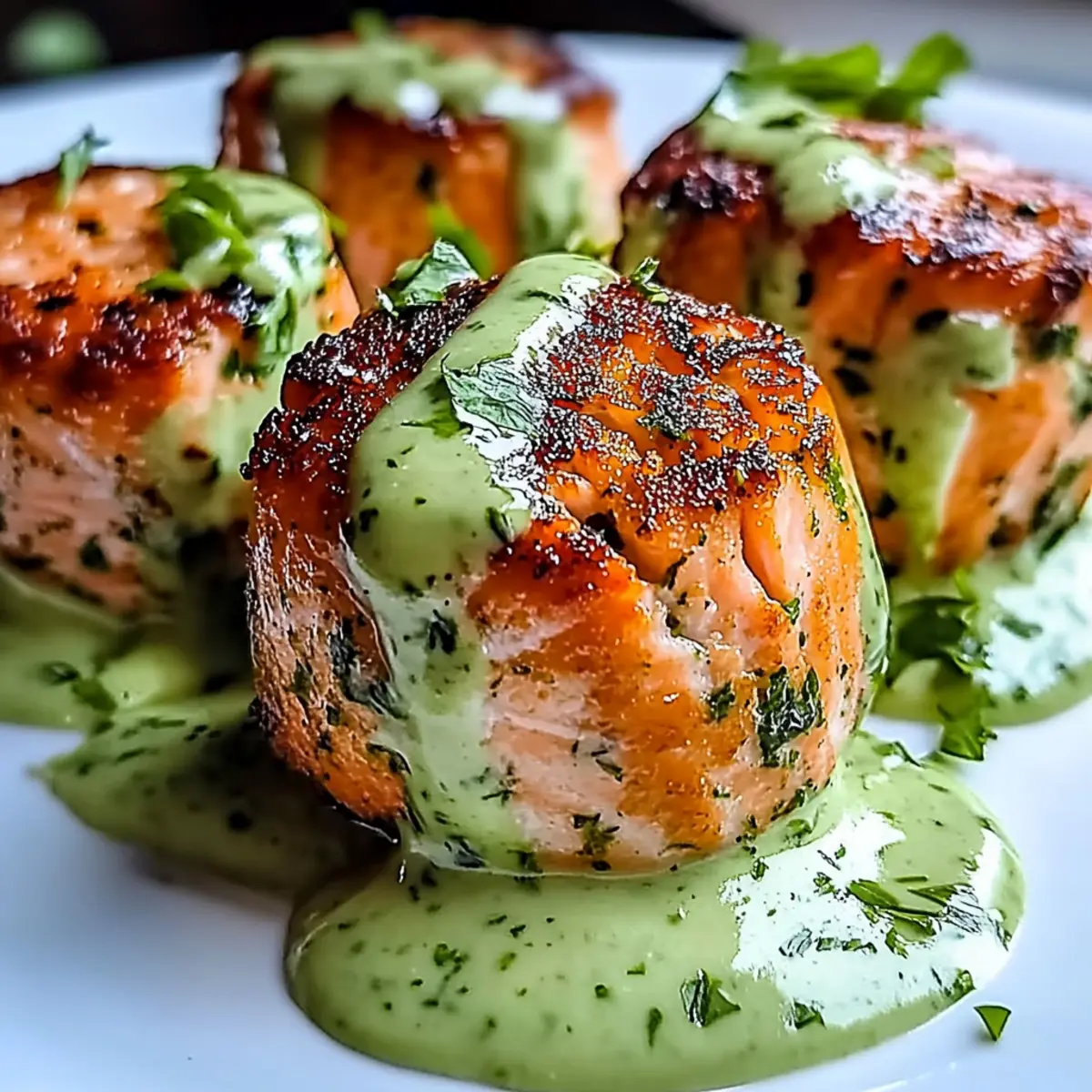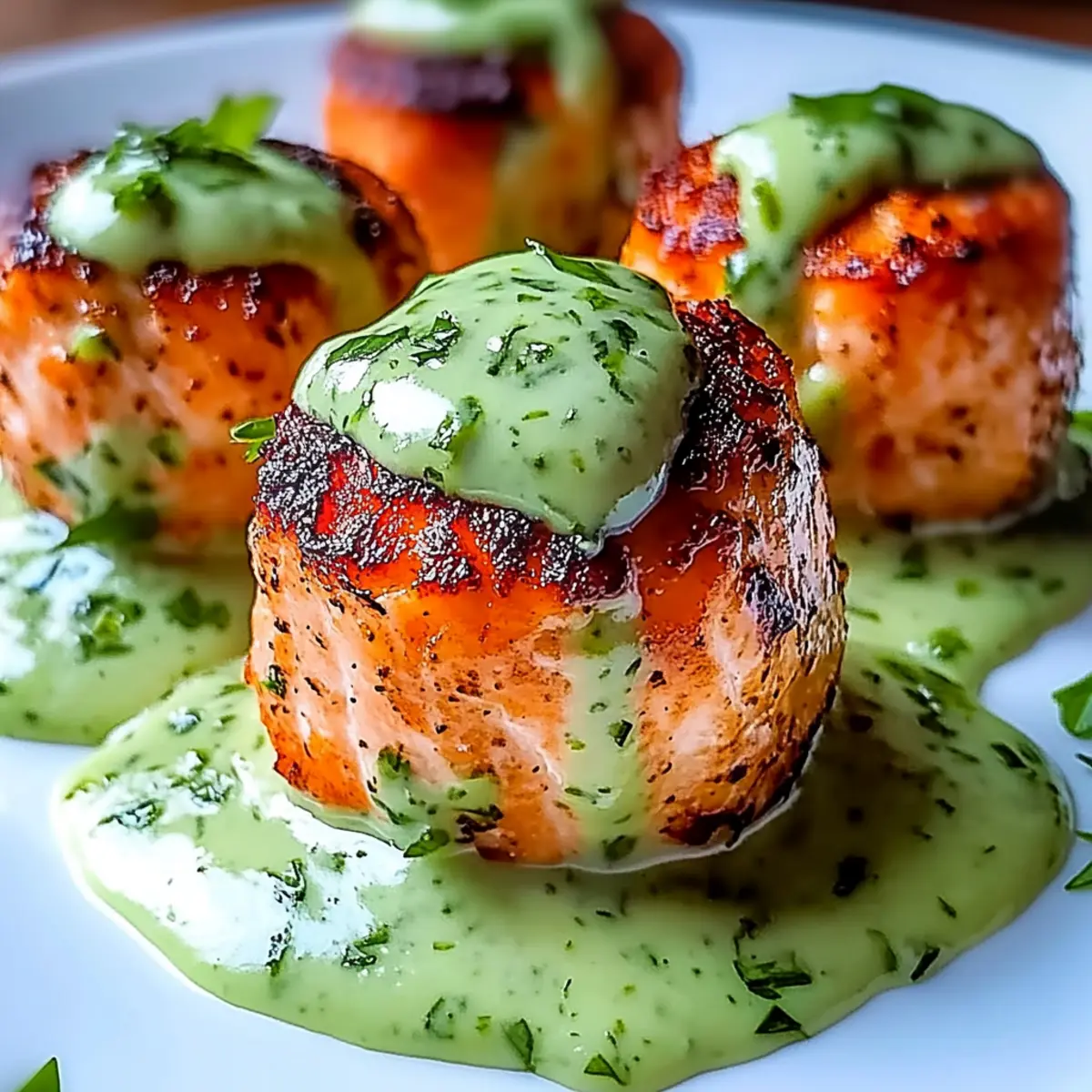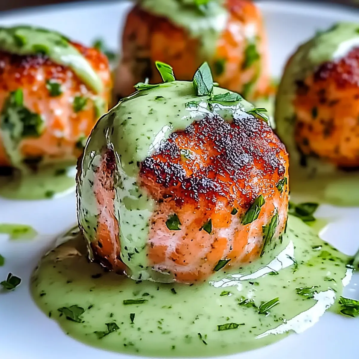 - Arrange the salmon balls on a serving platter. Drizzle the creamy avocado sauce over the top or serve it on the side.