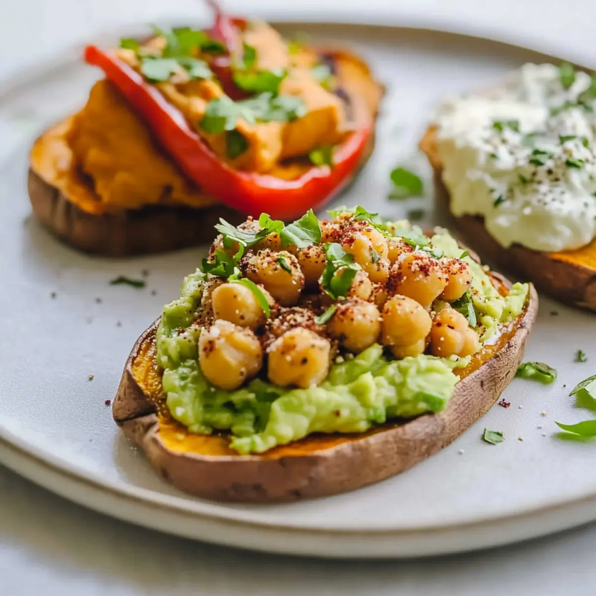 While the sweet potatoes toast, mash one ripe avocado in a bowl. Mix in half a cup of drained and rinsed chickpeas, adding a teaspoon of sumac, a pinch of sea salt, and the juice of half a lemon to brighten the flavor. Blend until your desired consistency is reached—smooth but with a hint of texture. This creamy topping will elevate your Savoury Sweet Potato Toast.