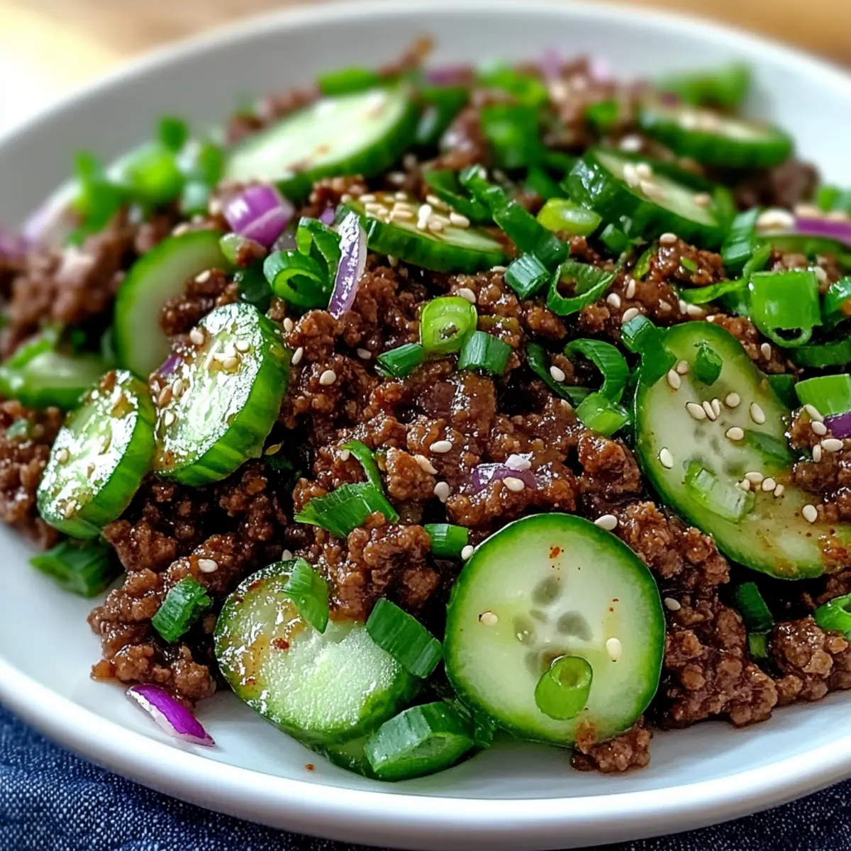 The sizzle of ground beef hitting a hot skillet instantly transports me to a bustling Korean street market, where aromas mingle and flavors collide. Today, I’m excited to share my 25-Minute Spicy Korean Ground Beef with Cucumber Salad recipe—a quick, easy dinner that not only tantalizes the taste buds but also embraces healthful eating. Packed with spicy, savory notes and paired with a refreshing cucumber salad, this dish strikes the perfect balance between comfort food and nourishment. Best of all, it’s meal prep-friendly, making busy weeknights feel less chaotic while delighting even the pickiest eaters. Ready to spice up your dinner routine? Let’s dive into this delicious, vibrant culinary adventure together!