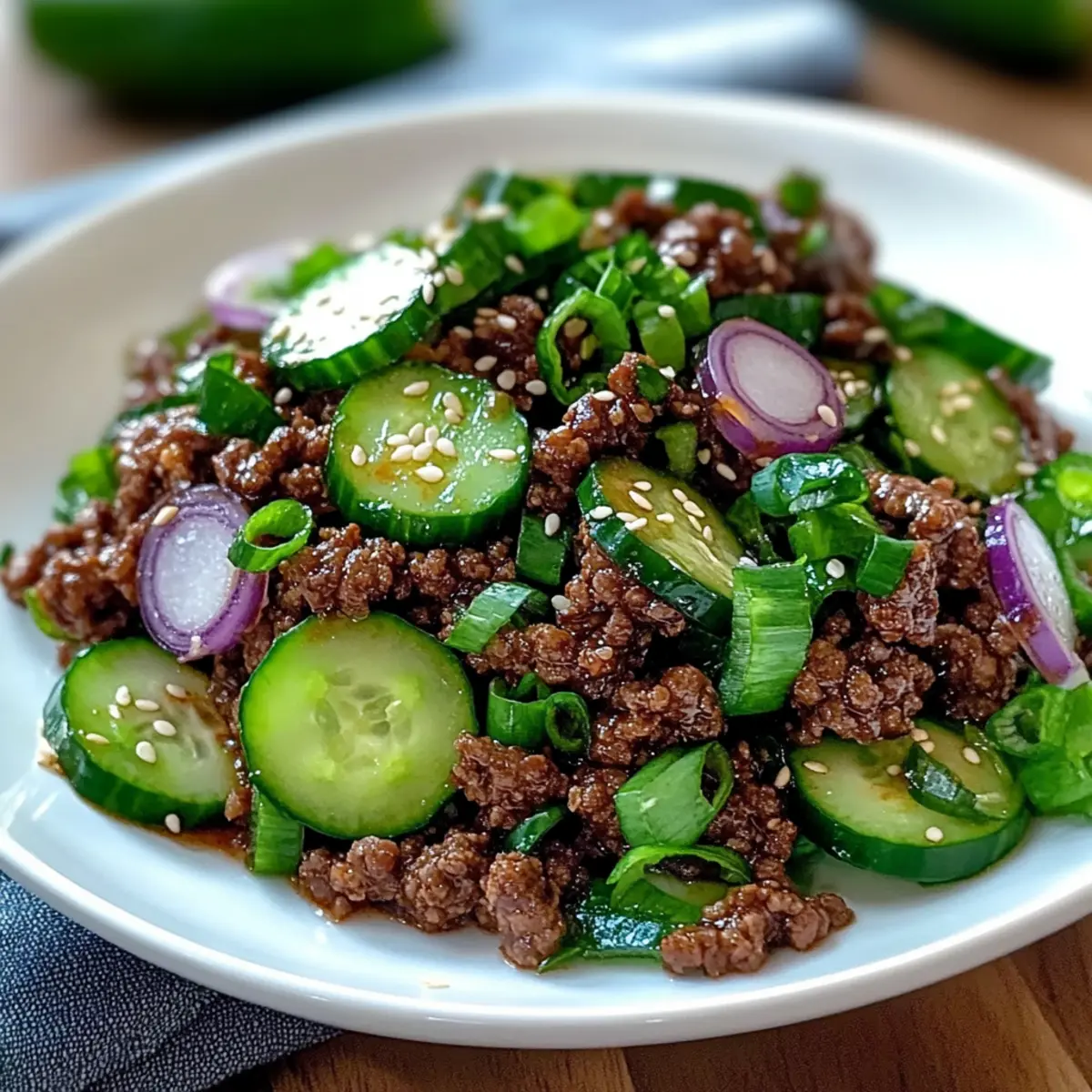 Cucumber Crunch: To maximize freshness, slice the cucumber just before serving. This ensures it stays crisp against the spicy beef.