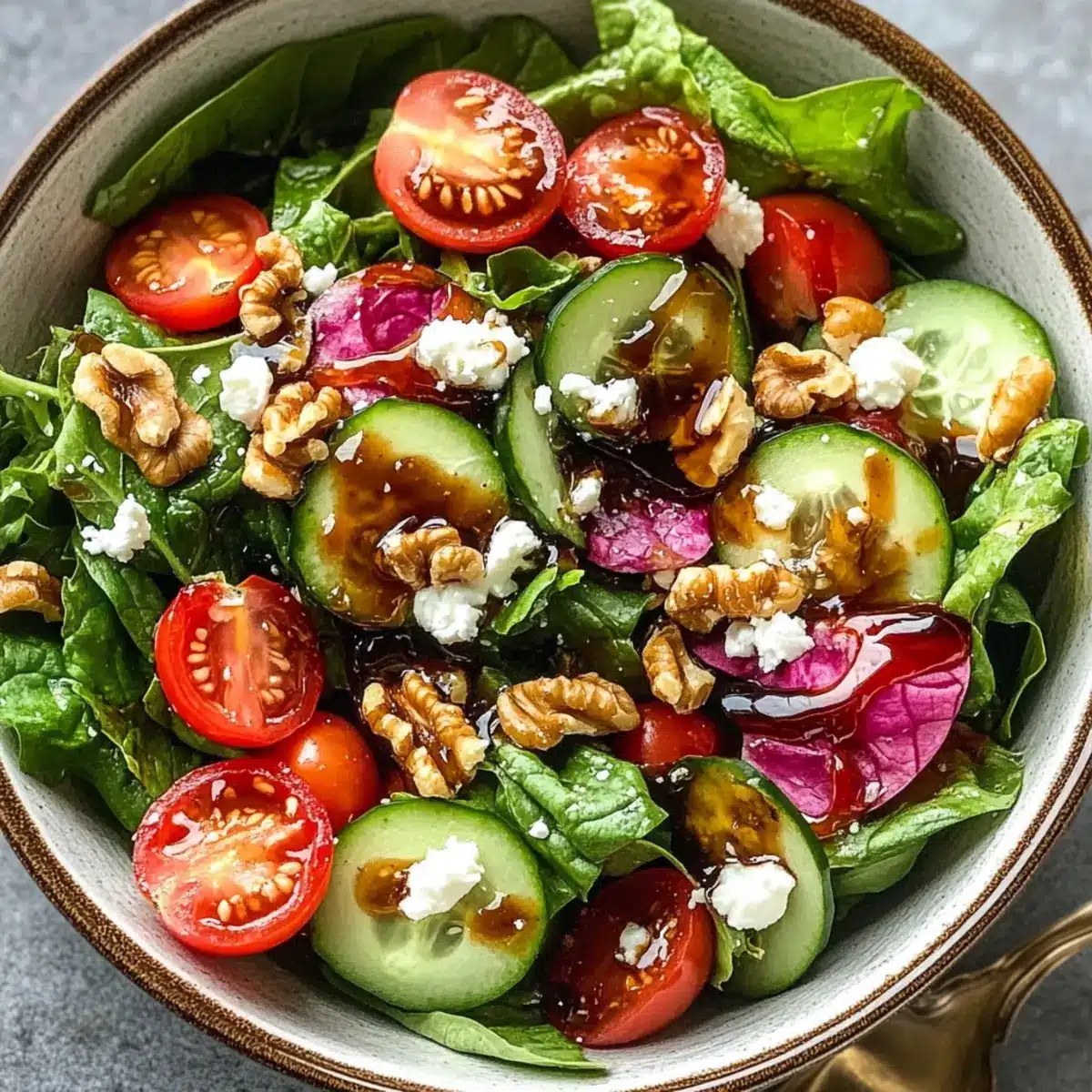 Absolutely! If you’re looking for a dairy-free version, you can skip the feta cheese altogether and consider adding sliced avocado or chickpeas instead for a creamy texture. For a gluten-free option, you’re already set as long as you check that your balsamic vinegar is gluten-free. Always be mindful of nut allergies when adding walnuts or pecans; you can simply omit them or substitute with sunflower seeds for crunch.