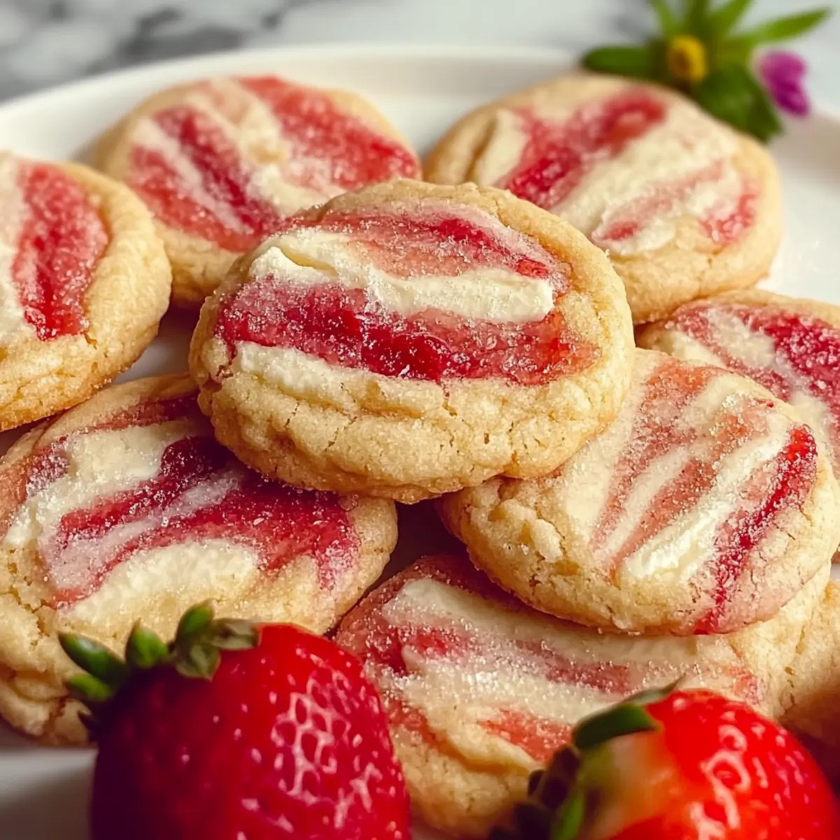 Once baked, allow the cookies to cool on the baking sheet for about 5 minutes before transferring them to a wire rack. This helps maintain their shape. They can be dusted with powdered sugar before serving for a touch of whimsy, bringing a delightful touch to your Strawberry Cheesecake Cookies!