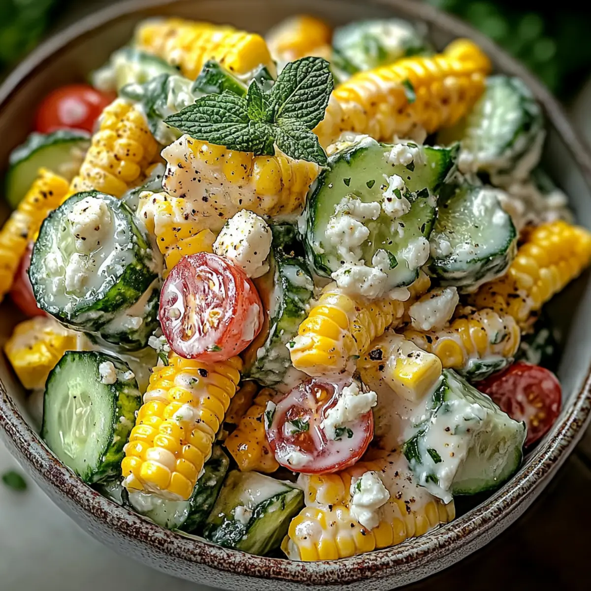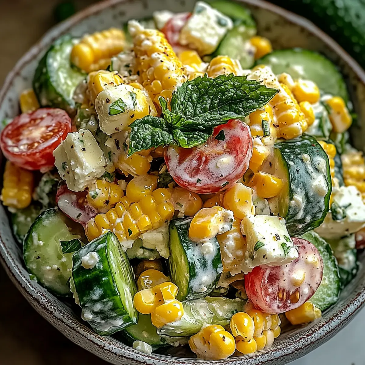Vibrant, fresh flavors: The combination of sweet corn, crunchy cucumbers, and creamy dressing creates a delightful medley that screams summer.