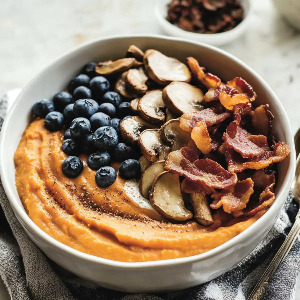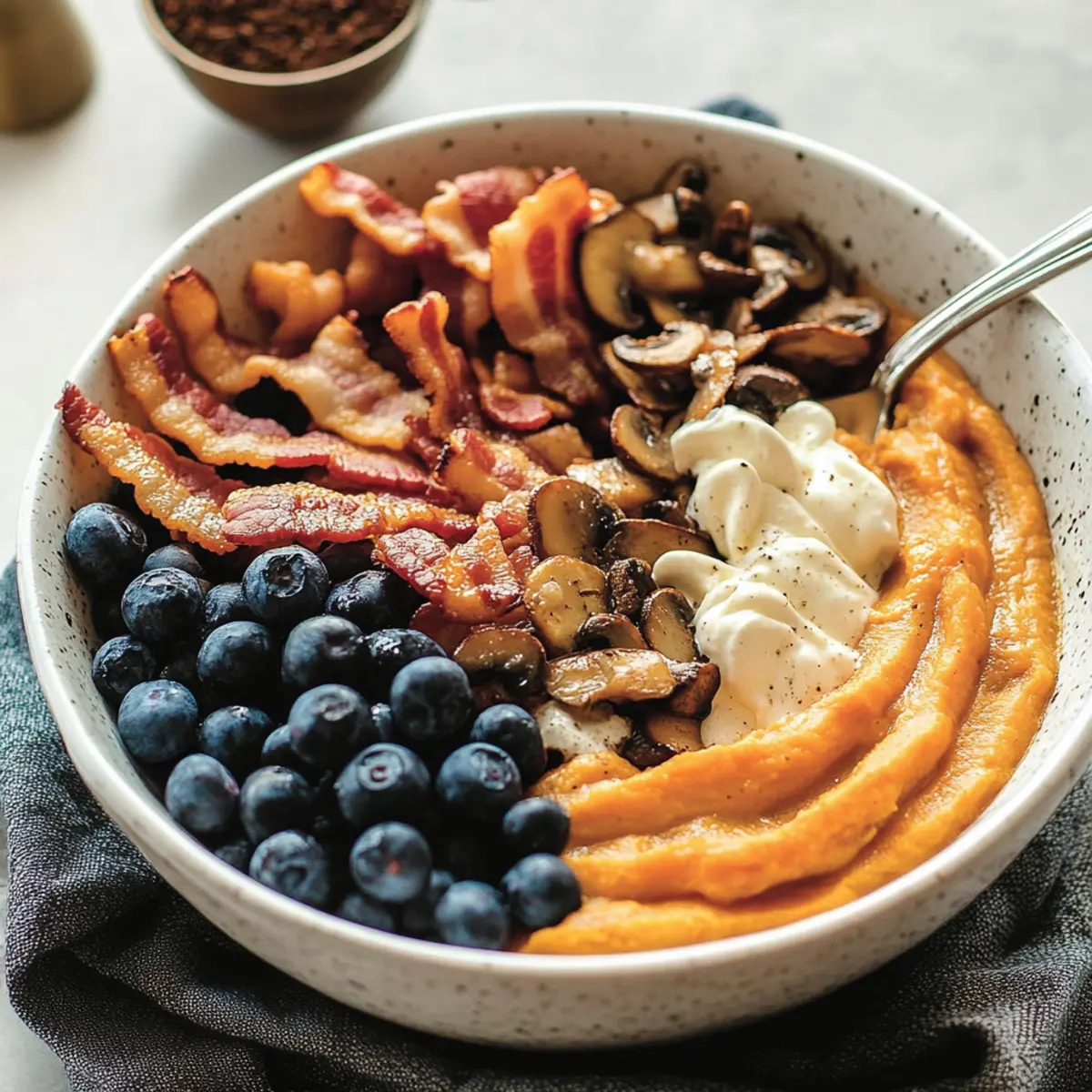 Crispy Bacon: Offers a savory crunch that contrasts beautifully with the smooth sweet potato base, elevating your meal’s protein content.